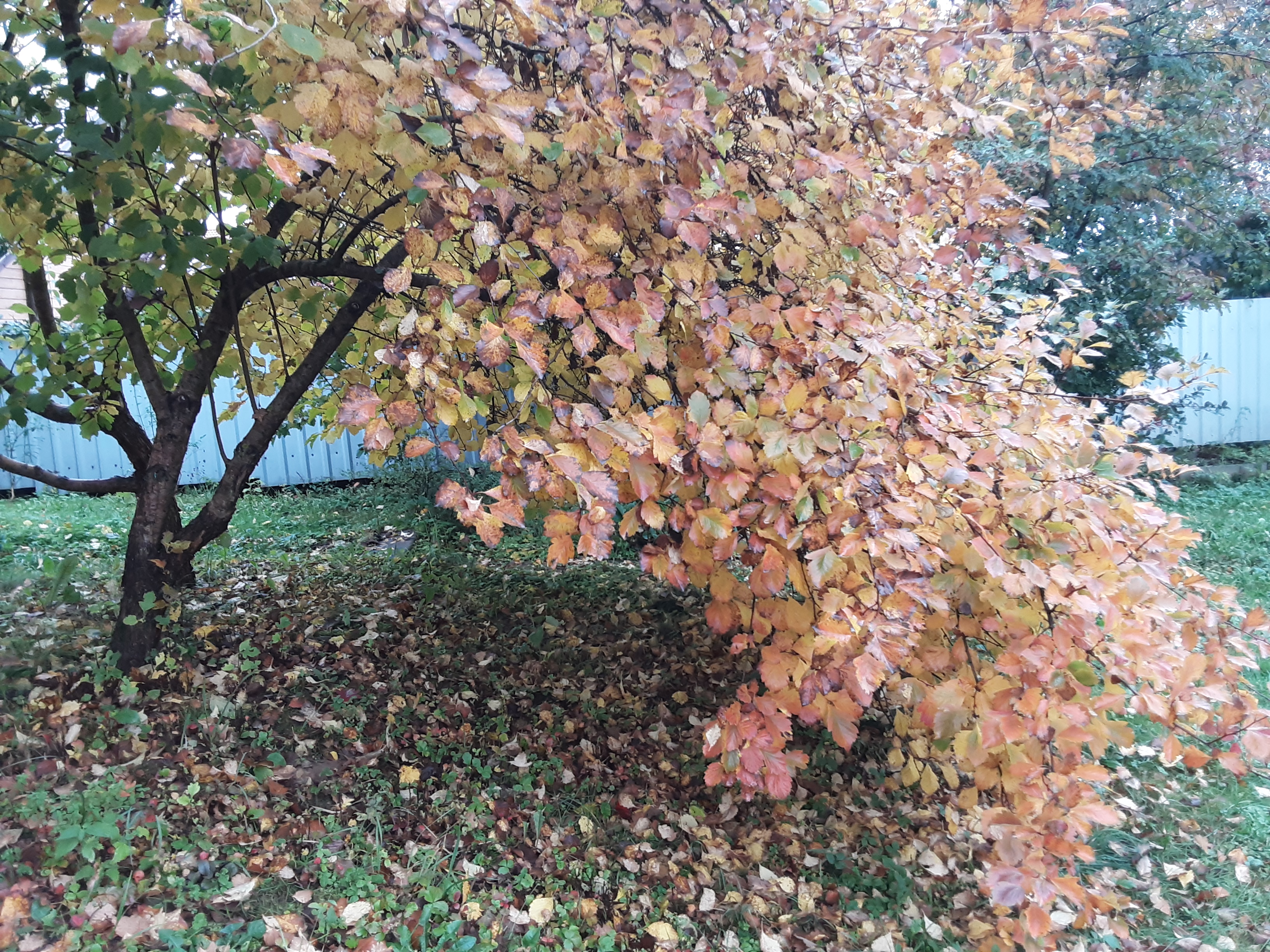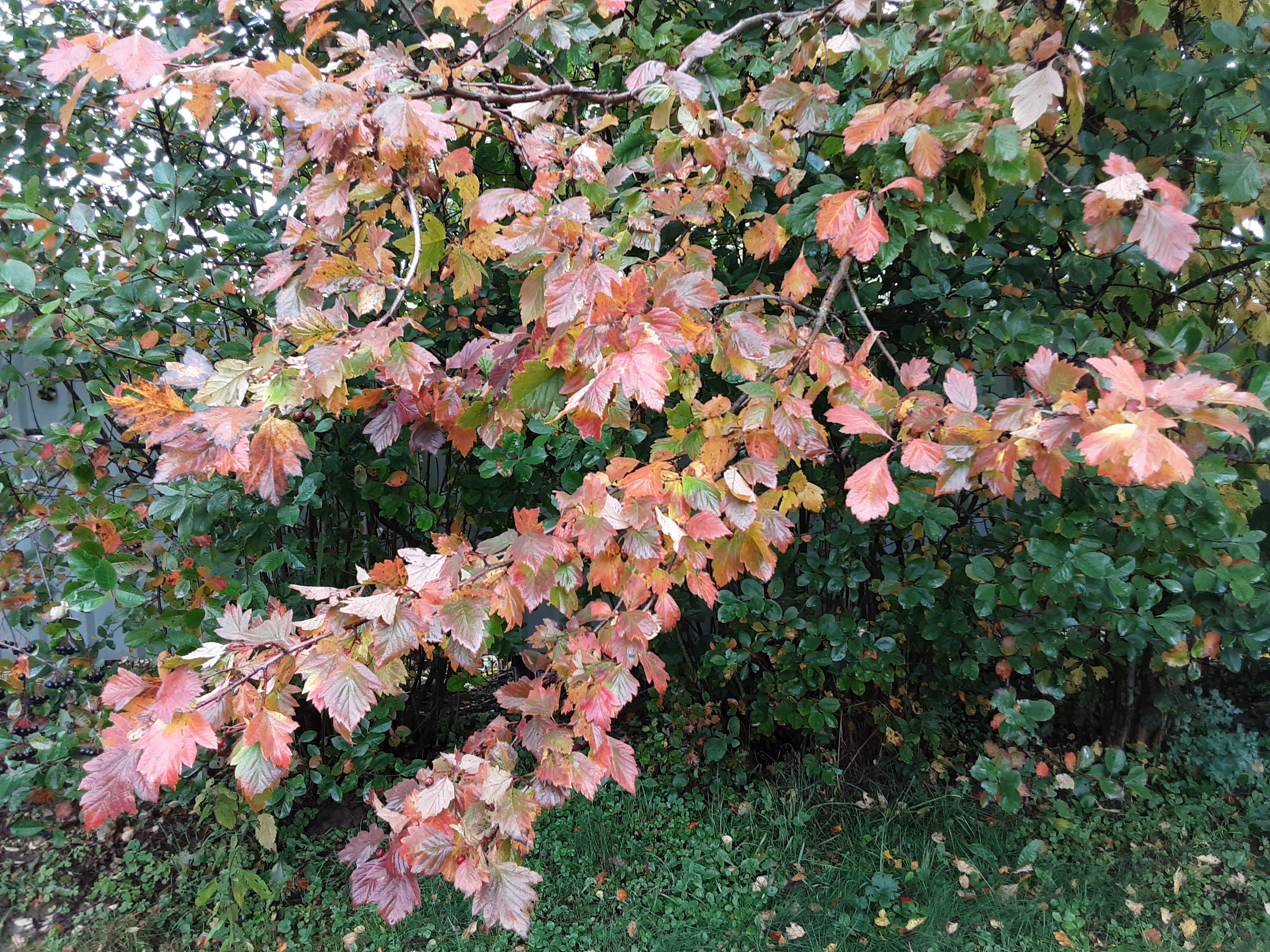 Стричь собираюсь, но редко, забор 20 метров. Надо стричь, чтобы густой, веточки снизу шли и метра 2 высотой. Листья аронии сейчас желто-розово-красные, красивые. У нас в городе везде растет арония.