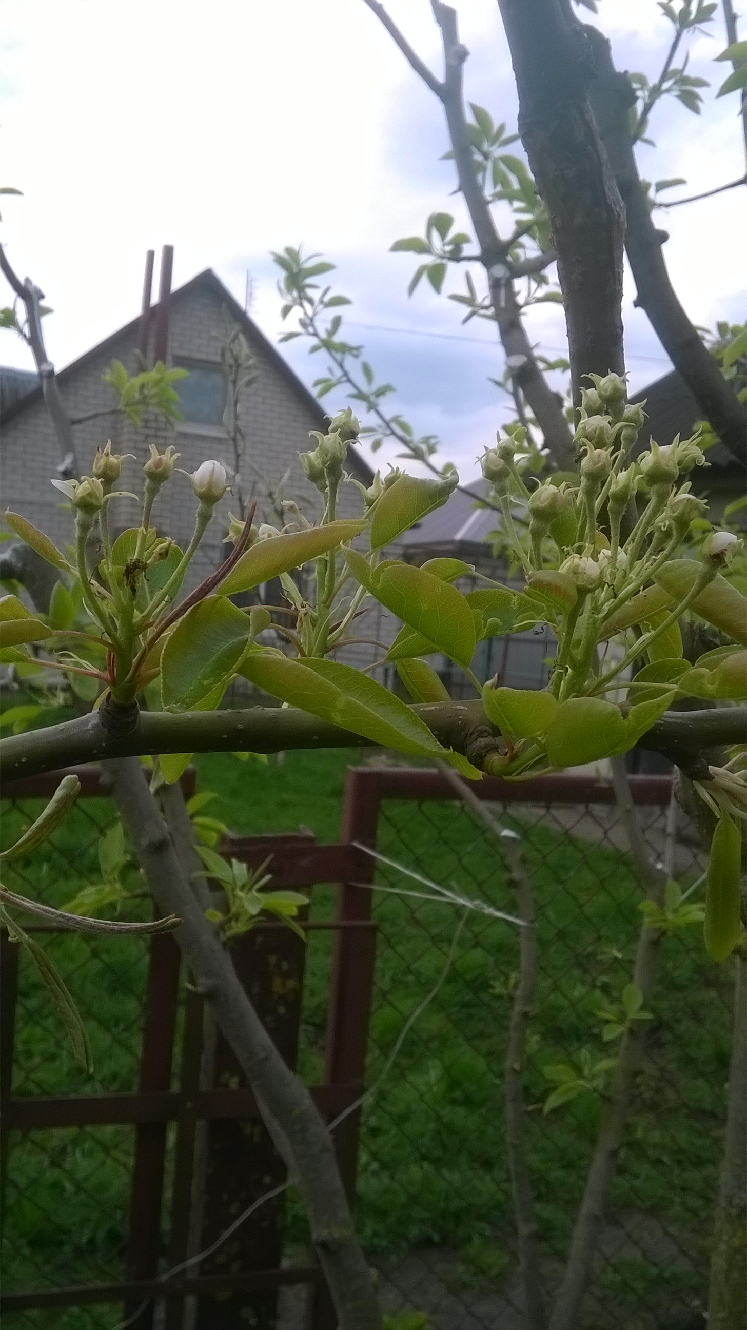 Сначала смутила зелень прошлогоднего побега,потом присмотрелся к своей на фото-также зеленовата,только успела к зиме вызреть и потемнеть.Лист своеобразный,вытянутый,плодоношение на двухлетней древесине,но может и на однолетней зацвести,об этом Р.Д.Исаев также упоминает.На фото двухсортовая груша,АР привита в лидер.