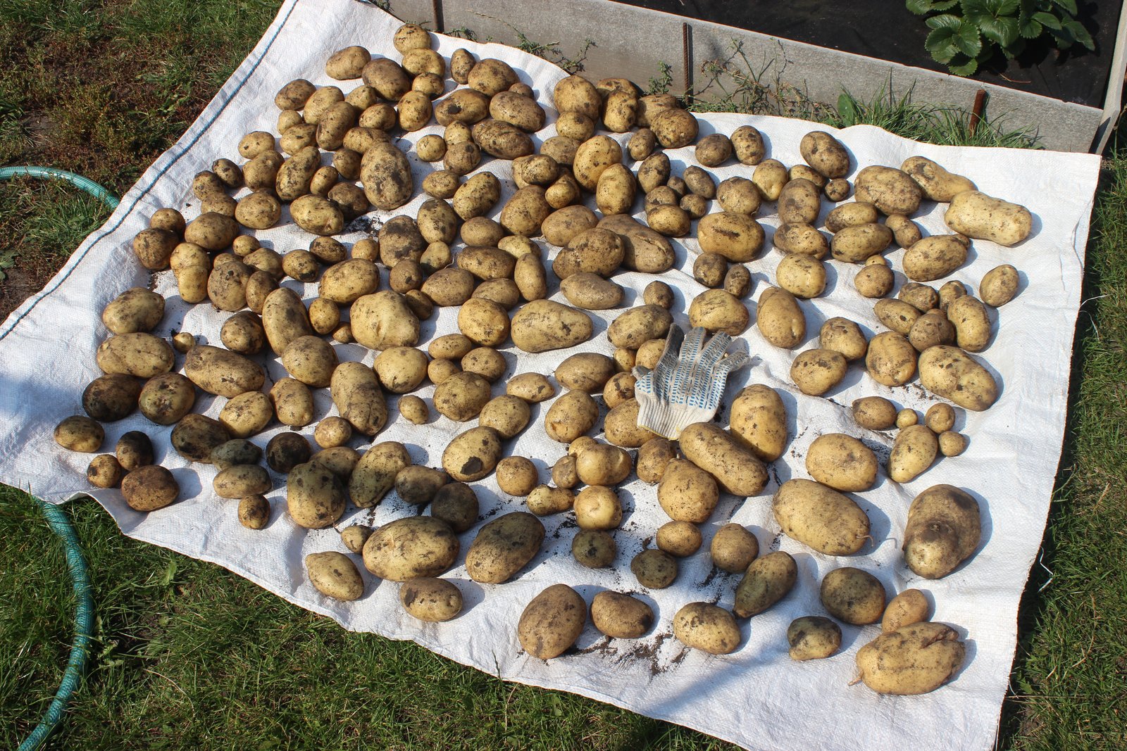 Вчера выкопали картофель,результат не плохой,но мог бы быть и лучше,посадили 16 вёдер,накопали 311,сегодня при тчательном просмотре участка(за бабушками не уследил,каюсь) ещё набрали 3 ведра крупной,семенной 2 ведра и мелочи 6 вёдер,но это скидываю на "утряску".Самый хороший результат показала Королева Анна,Мерлот,Балтик Роуз,Инара.Среднячки Вега(клубни крупные но мало)Венди(клубней много,но много семенной и мелочи),Откровенное разочарование Пикасо,клубни крупные,но все какие то уродливые,Славянку пока не понял,единственный сорт у которого шкурка ещё не окрепла совсем,клубни очень крупные,но не ровные,глазки глубокие,хотя урожайность и устойчивость к болезням на высоте,посмотрю ещё годик,но конечно тому же Балтик Роуз по товарности клубней она не конкурент.Гусар показал себя не плохо,но больше сажать не буду,как и Снегирь,много мелкой и неровной картошки.Год был для меня не простой,сначала столкнулся с Совкой,потом не известная болезнь(ризоктанариоз пока не потвердился),затем залили дожди(клубни задыхались) теперь буду держать в сарае недели три не меньше,пусть вылёживается хорошенько.