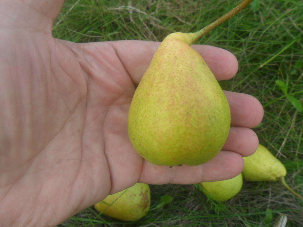 Черенок из института.В связи с тем что черенки большие все делил на двоих. Из половины сделал 1 прививку в крону и 2 саженца.По описанию созревание конец августа вот я и расчитывал на середину августа пока не увидел 4 груши в траве.Да . что ни сорт то открытие.