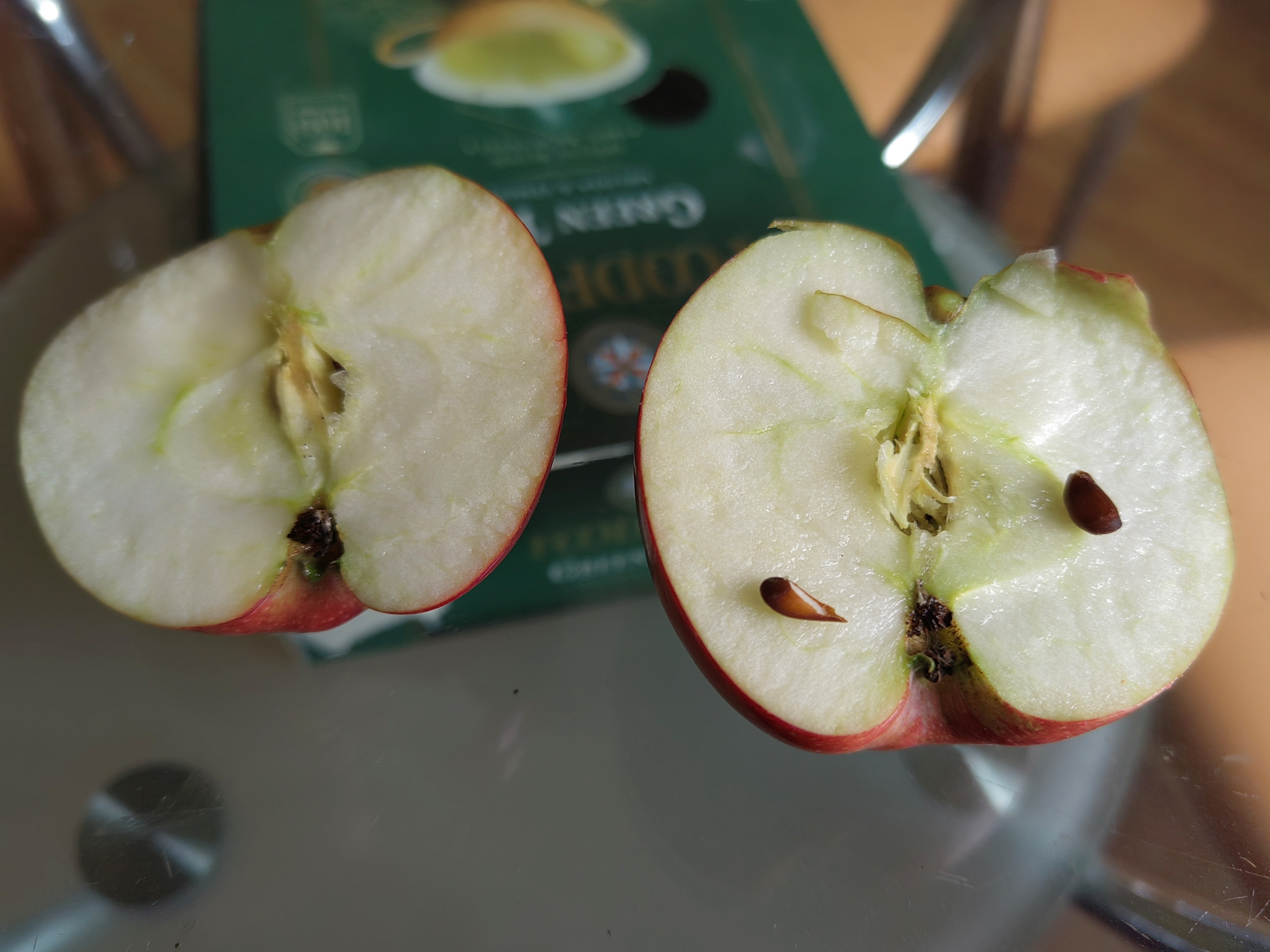 И Моди и Амброзия естественно ещё не дошли до кондиции но кушать уже можно из за отсутствия кислоты. Амброзия более познее яблоко, семечки беловато-коричневые.