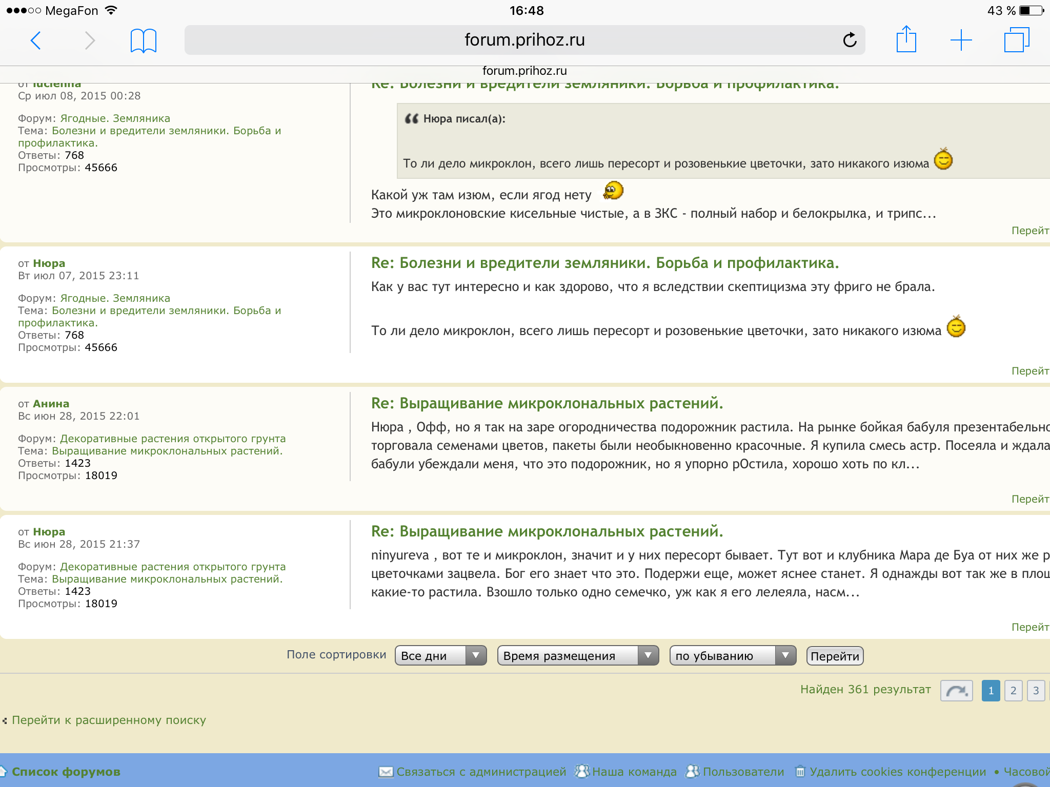 Таня, у меня тоже 25 страниц результатов. А переходишь в одно из них, а там одно единственное последнее сообщение.