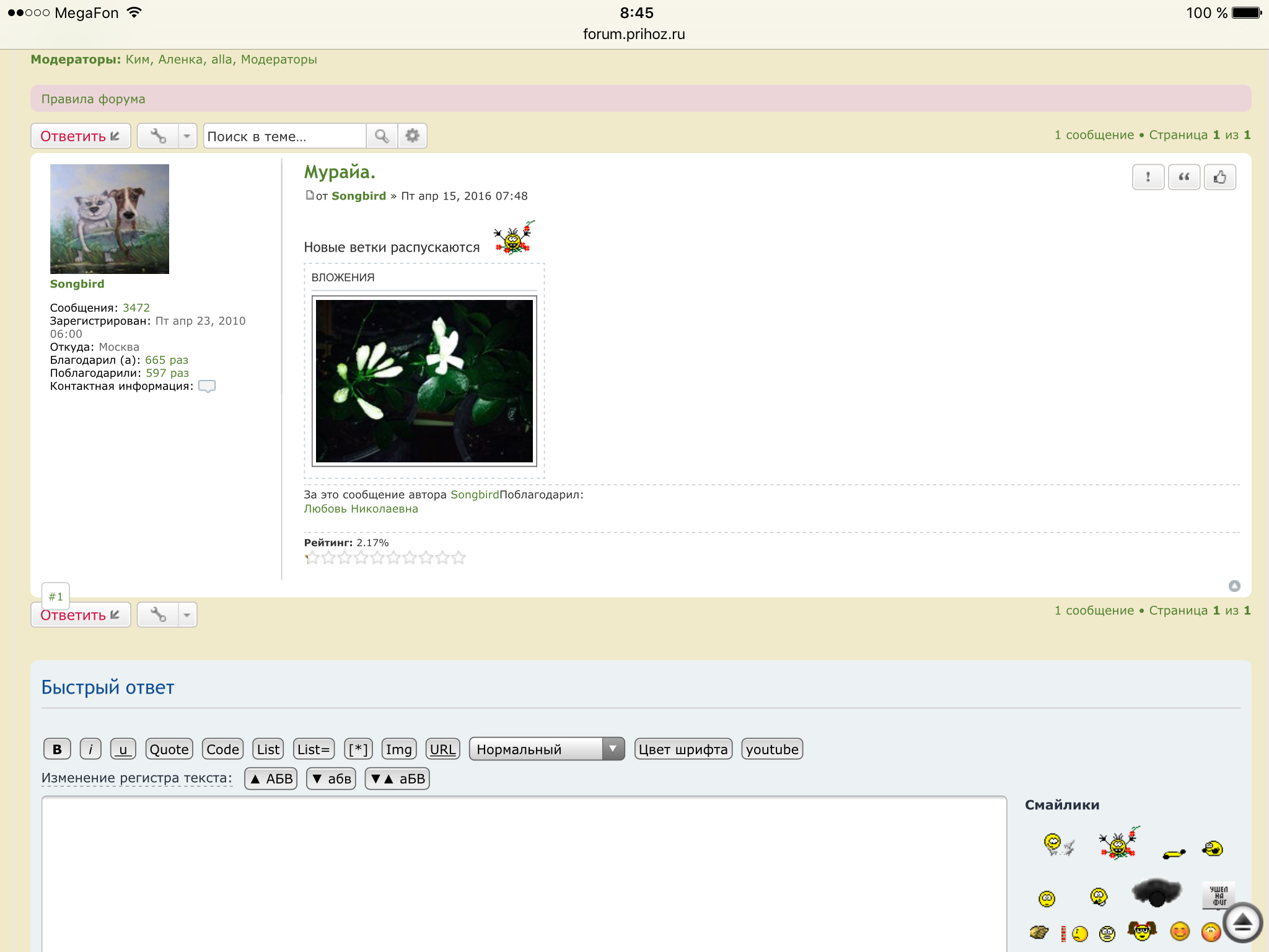 Освежила тему Мурайя и сразу показать "сообщения" появилось.