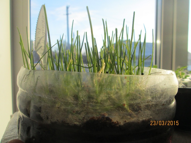 Я первый год посеяла лук в стаканы 0,5л. Тоже был неплохой, но пришла к выводу, что посуда тесновата, поэтому и перешла на 5л. Ничего страшного, еще немного потерпит, а там и на свободу.