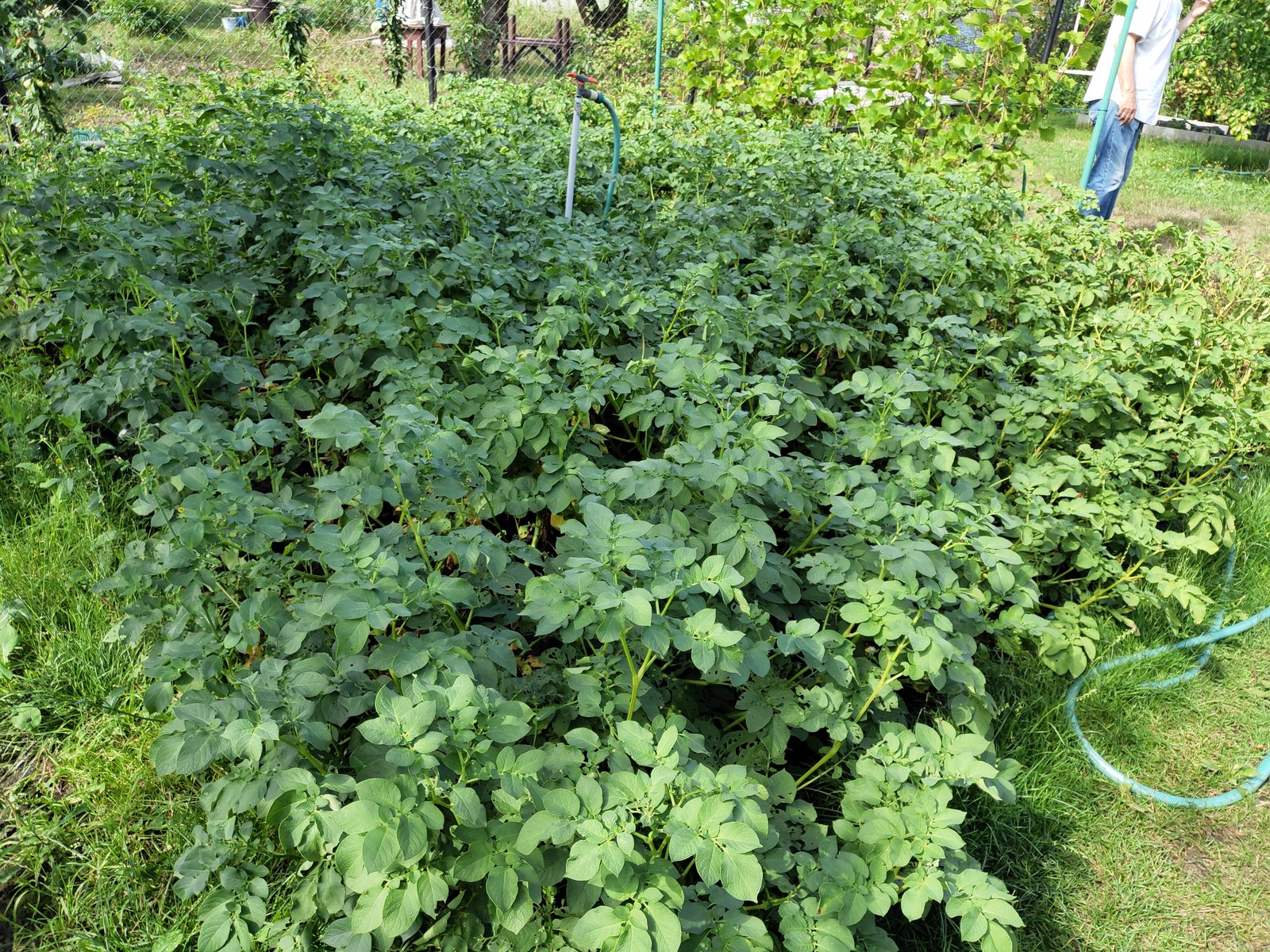 Из 9 оставшихся сортов уже пожелтели и полегли Венета, Инара, К.Анна, Гала. Балтик Роуз начал желтеть и высыхать, пришлось его обрезать, всего 4 куста для разведения. У Венди рано засохла ботва, похоже фитофтора, пришлось выкопать раньше времени, сохранился только один куст.Зелёная ботва у сортов Манифест, Синеглазка и Джелли, до сентября простоят.