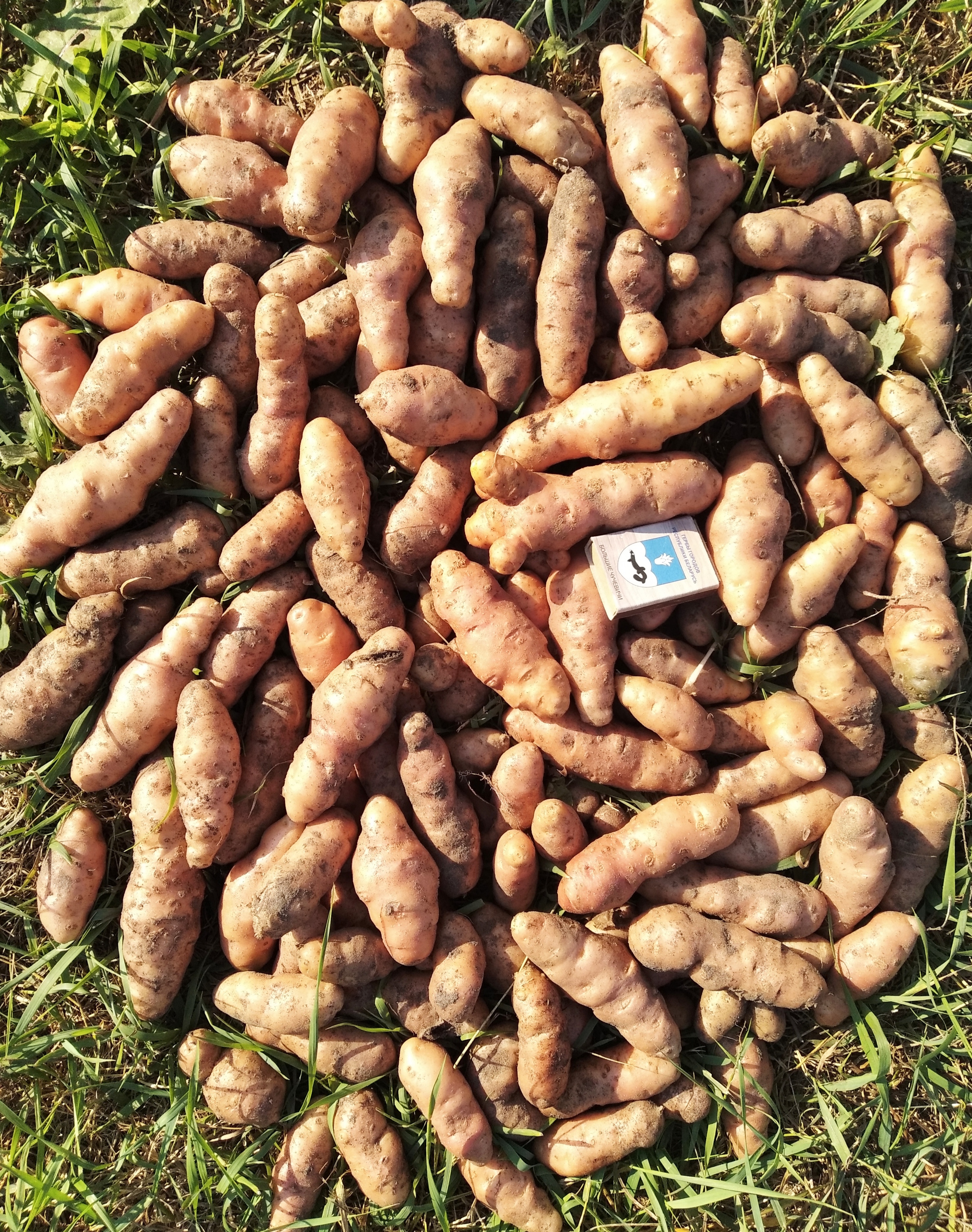 Неделю назад выкопала в два захода первый синий сорт- Северное сияние. Результат порадовал, несмотря на малую в сравнении с традиционными сортами урожайность, для капризных синих это очень даже неплохо, учитывая, что рос в экстремальных условиях по целине без поливов.
