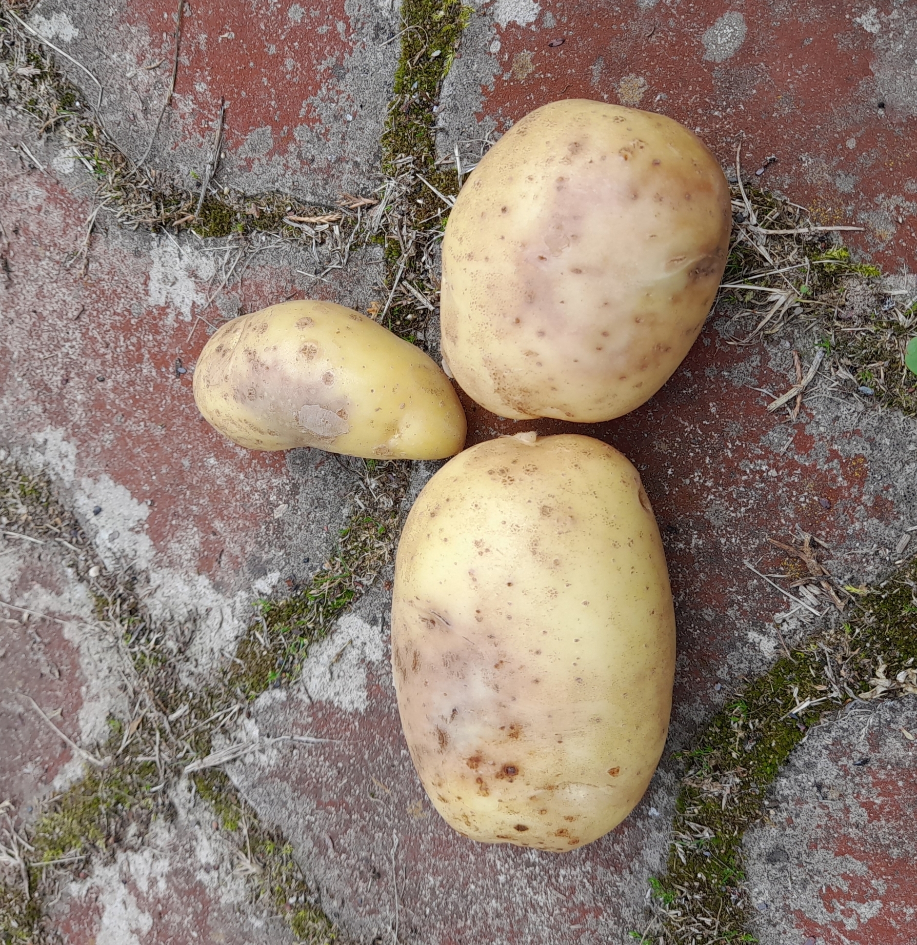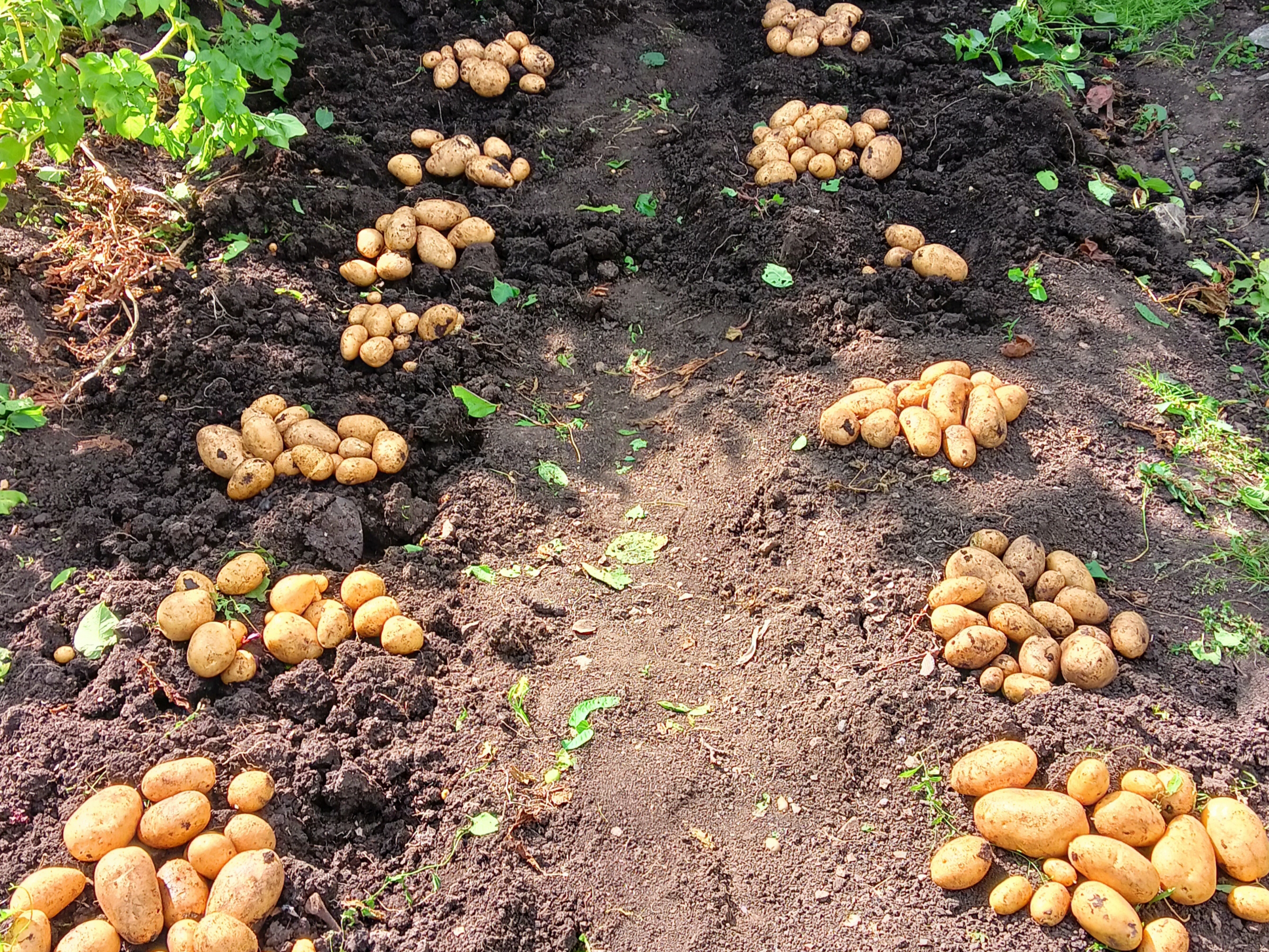 Ранние сорта, ветка засохла, начал копать. Последние 3 недели жарко и сухо, лишь один небольшой дождик и до конца августа такой же прогноз по погоде. На фоне сильнейших ливней в начале лета, землю капитально прибило. В середине гребня еще б/м рассыпается, а из междурядья выковыриваются плотно сформованные кирпичи. Даже появляется желание поливать, хотя и поздно уже? Пока урожай ниже среднего и до стандарта моего участка 12л ведро с горкой на 10 кустов ни один сорт не дотянул.