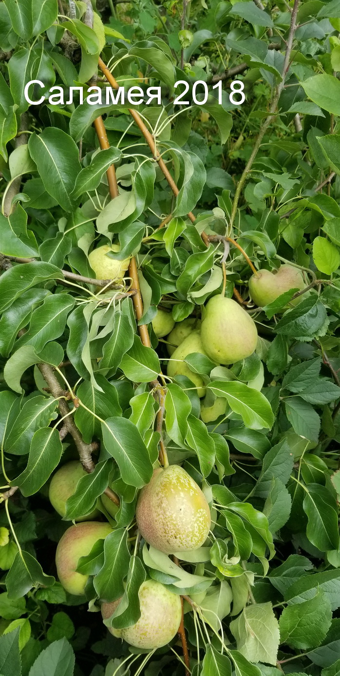 Черенки Соломеи в тот год попросил нарезать я. Этот сорт есть у женщины в Могилеве. Она писала .что ранее любимая груша у нее была Мраморная сейчас Соломея.Но когда пришел покупать черенки то взял вместо Соломеи Кудесницу . а жаль. Груша предположительно из Украины описания нет черенки только под заказ.