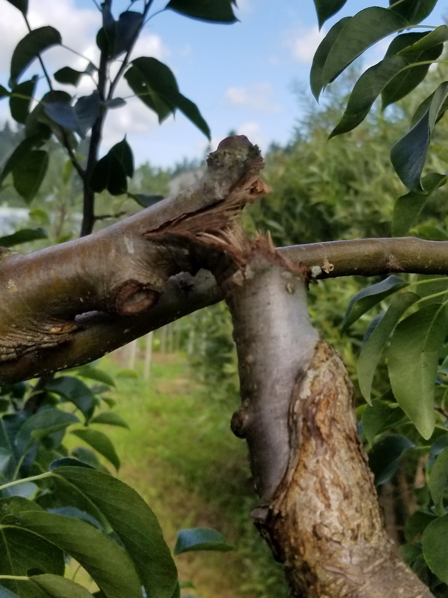 valery77, А что удивительного, если сильный ветер плюс большая нагрузка. Ветки не резиновые, да и формировка классическая. Ну и ветка не очень большая отломилась.