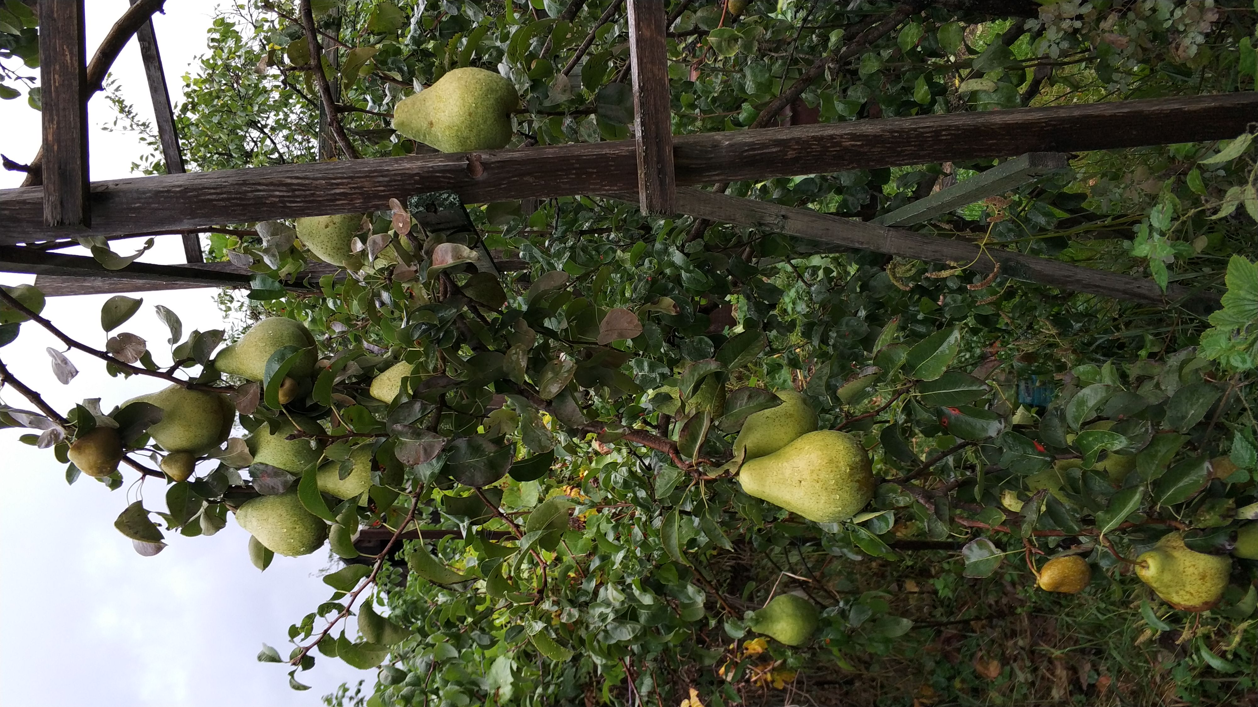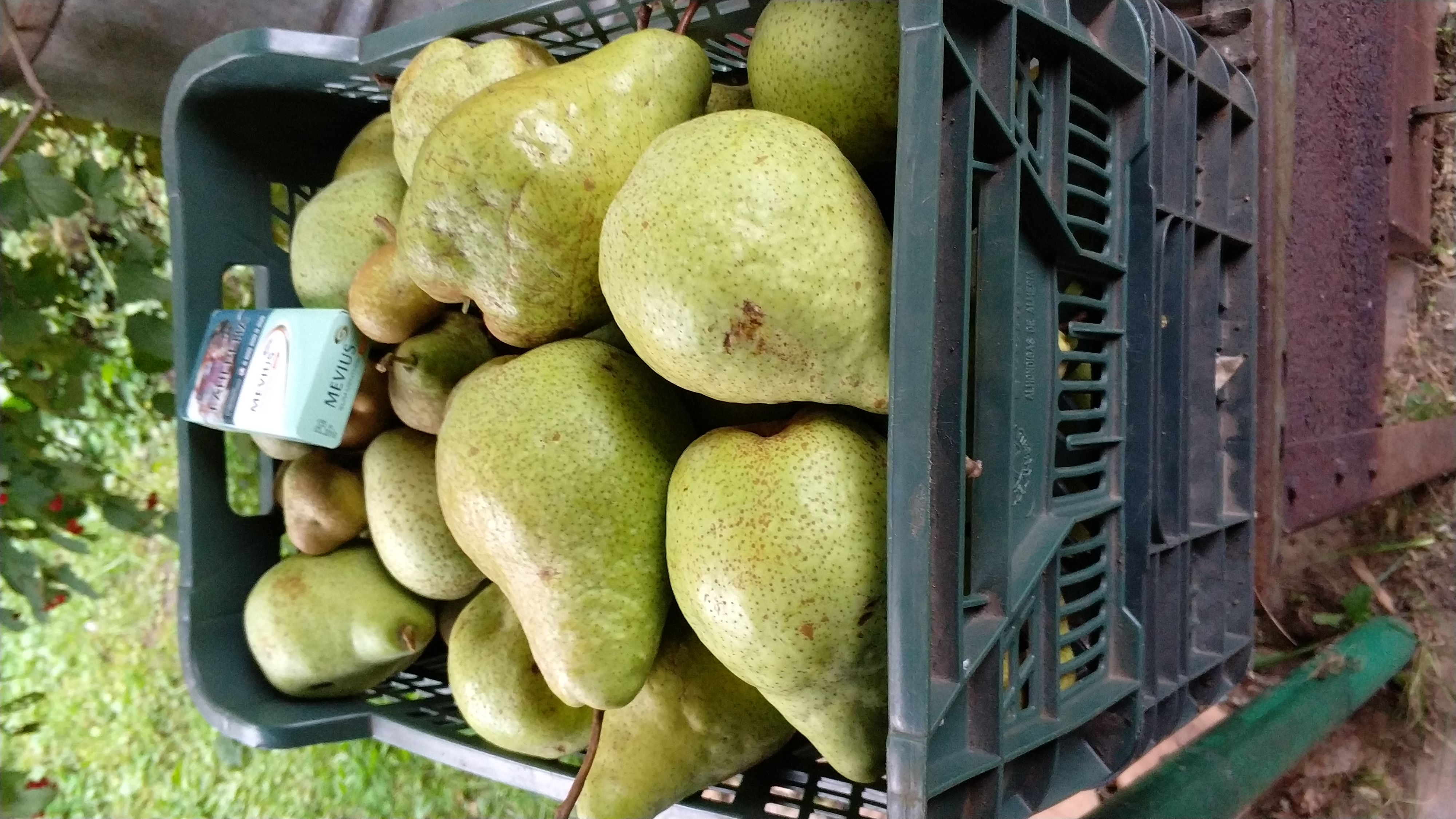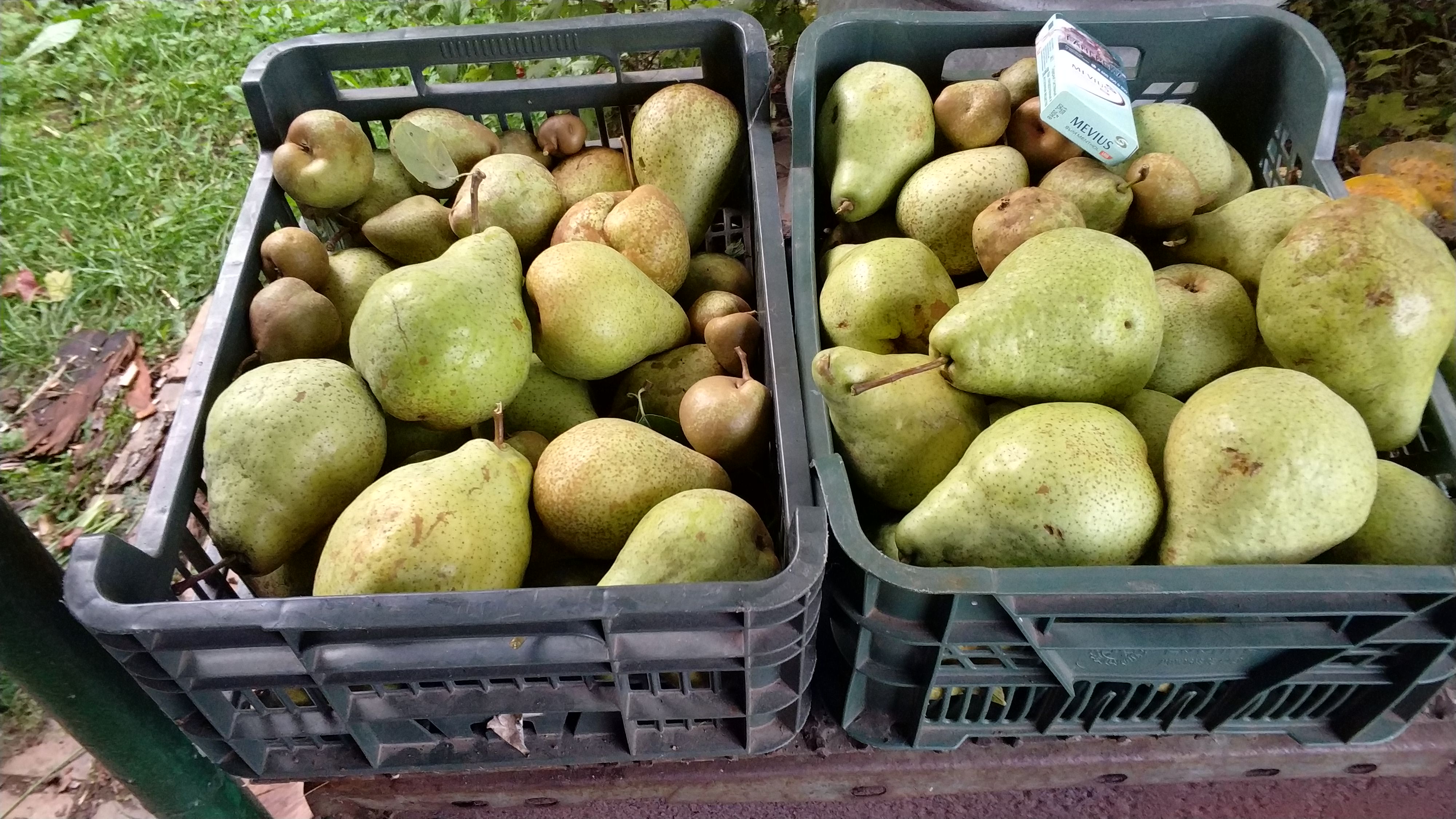 По сроку созревания они сильно разные." Учитывая, что плоды довесели до 29 сентября(весели бы дальше, но решили их снять из за угрозы заморозков),то это груша сорта Елена.Груша сама небольшая,ветки растут почти под прямым углом,к низу могут изгибаться.Плоды завязываются пучками , в основном, на молодых побегах.В начале завязи бордового цвета( от чего возникли вопросы о сорте груши), затем ближе к концу августа, становятся зелеными с размытым румянцем с солнечной стороны.Груши ,в основном, очень крупные,более 200 гр.По вкусу: мякоть плотная, без грануляций, сочная, хрустящая, сладость не приторная.(У Ники приторно медовый сладкий вкус).Груши, сорванные ранее имели (не все),терпкий привкус.Пока положили груши на хранение.