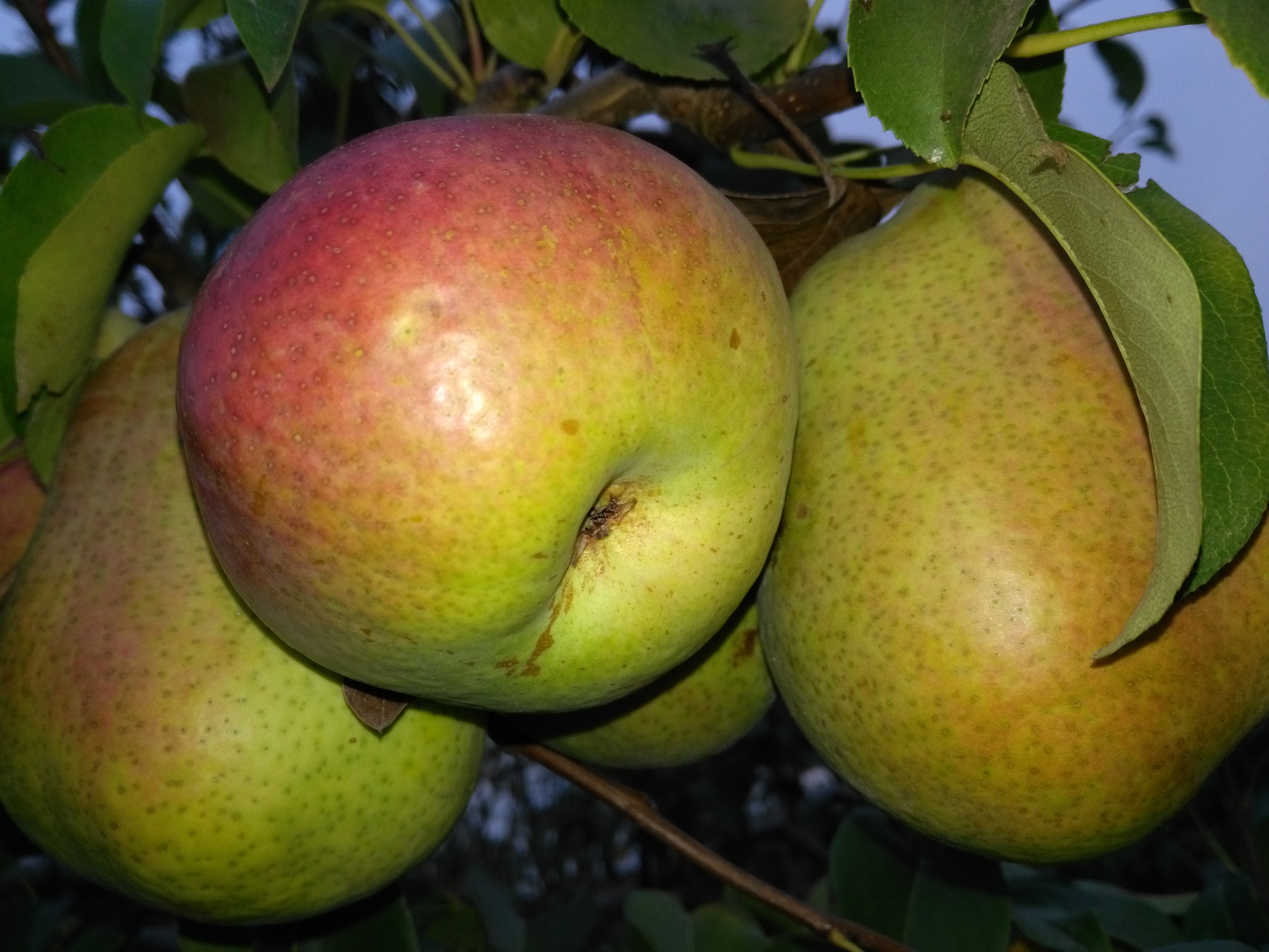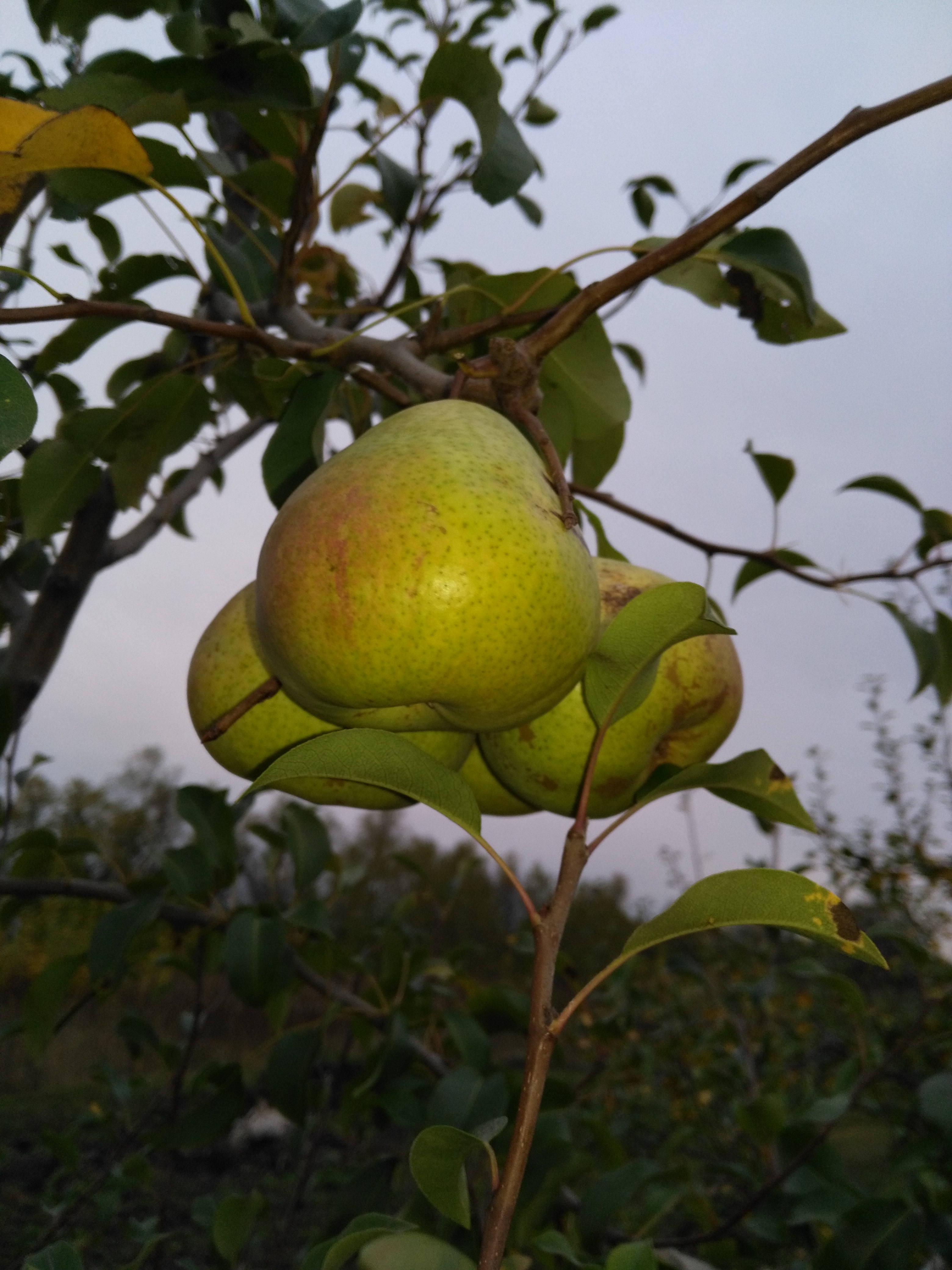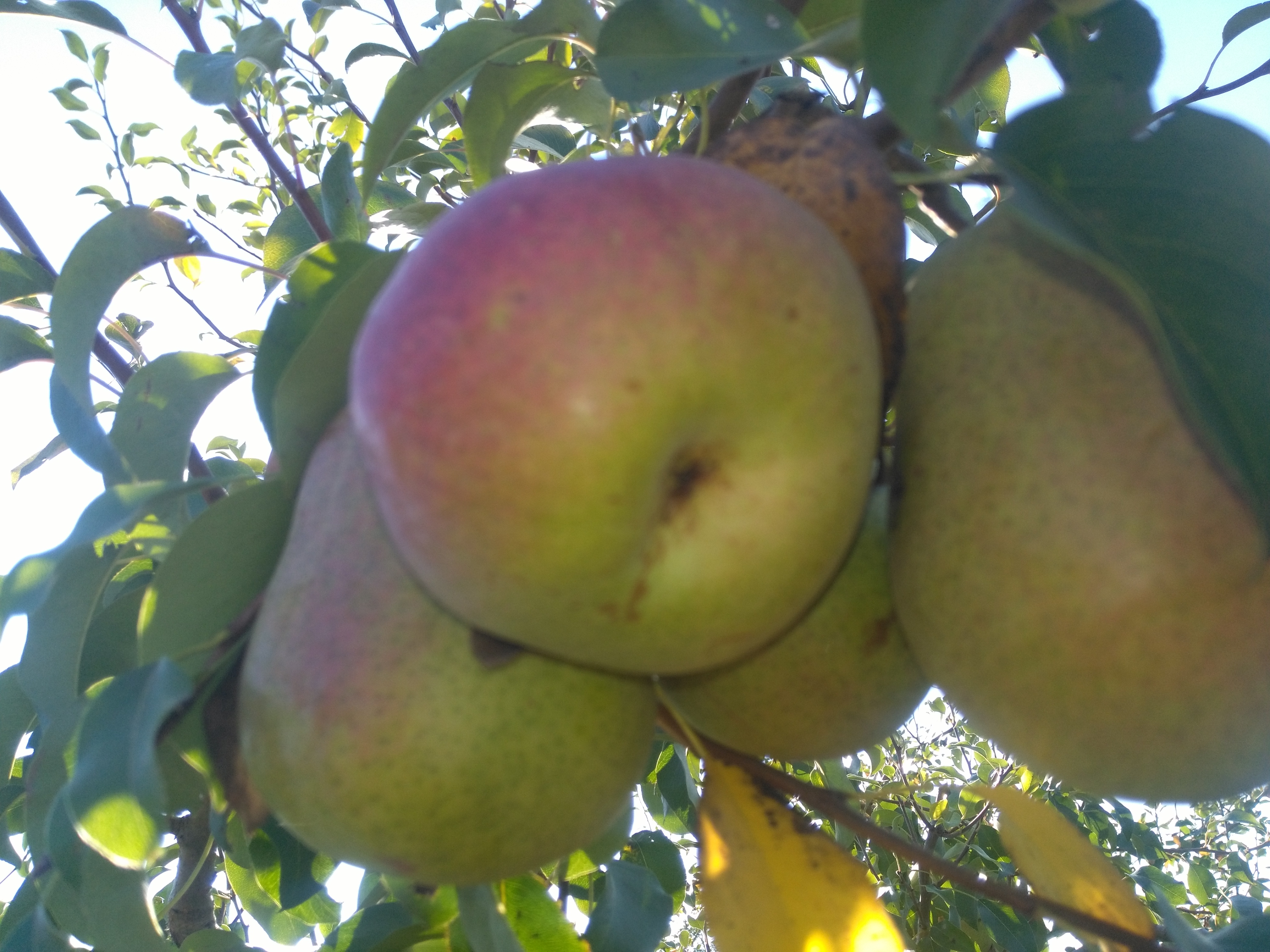 По сроку созревания они сильно разные." Учитывая, что плоды довесели до 29 сентября(весели бы дальше, но решили их снять из за угрозы заморозков),то это груша сорта Елена.Груша сама небольшая,ветки растут почти под прямым углом,к низу могут изгибаться.Плоды завязываются пучками , в основном, на молодых побегах.В начале завязи бордового цвета( от чего возникли вопросы о сорте груши), затем ближе к концу августа, становятся зелеными с размытым румянцем с солнечной стороны.Груши ,в основном, очень крупные,более 200 гр.По вкусу: мякоть плотная, без грануляций, сочная, хрустящая, сладость не приторная.(У Ники приторно медовый сладкий вкус).Груши, сорванные ранее имели (не все),терпкий привкус.Пока положили груши на хранение.
