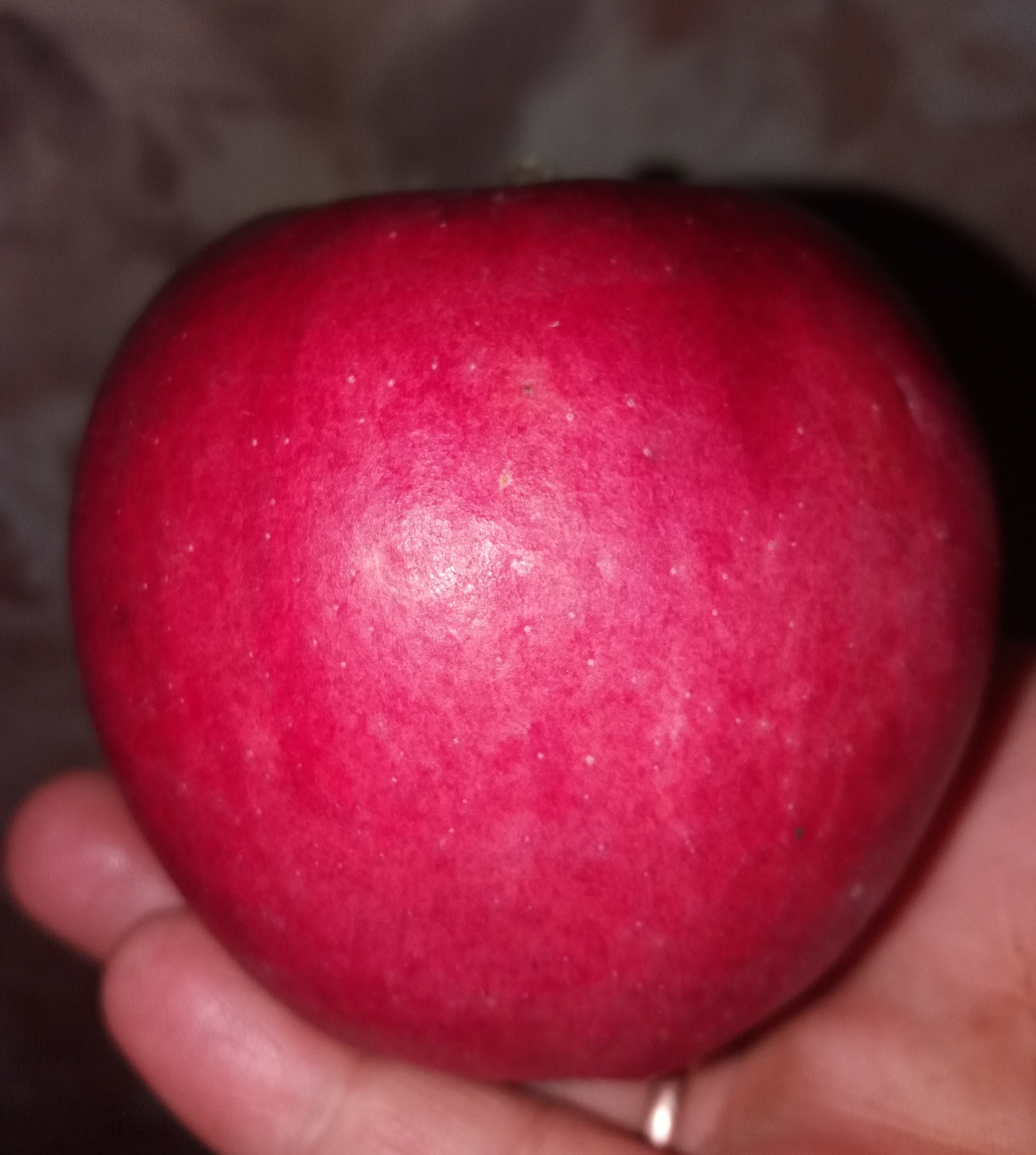 Вот ещё интересная фотка. Сорт Гала. Скорее его окрашеный клон. Дерево правда молодое но смысл в том что хорошо зацвело и сбросило завязи. Осталось яблоко и то в парше. Очевидно сказалось довольно холодная весна. Хотя вкус хороший насыщенный. Сорт не для нашего климата, хотя посмотрим дальше, убирать не буду.