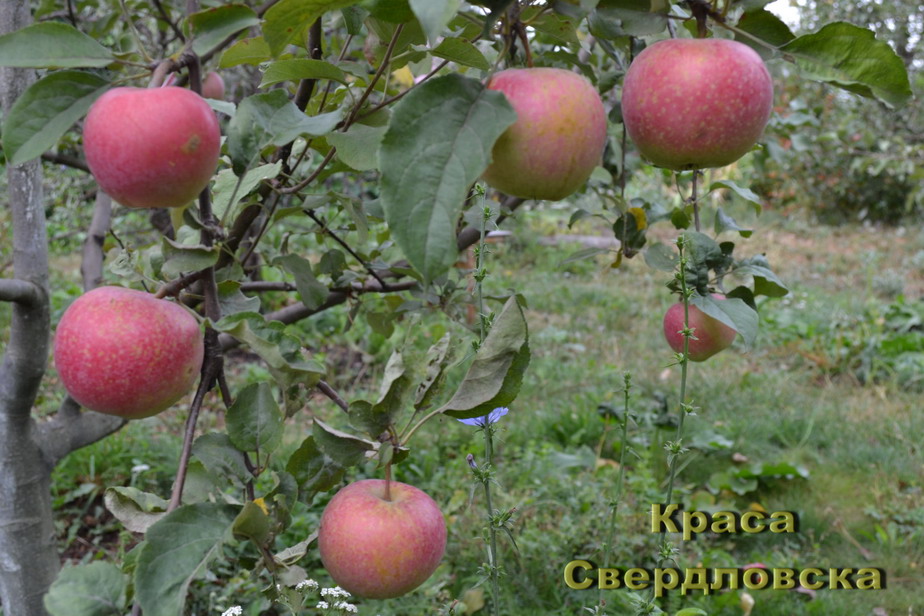 Визуально сорт мало чем отличается от Красы Свердловска. Но плоды значительно меньше, не более 80 г.