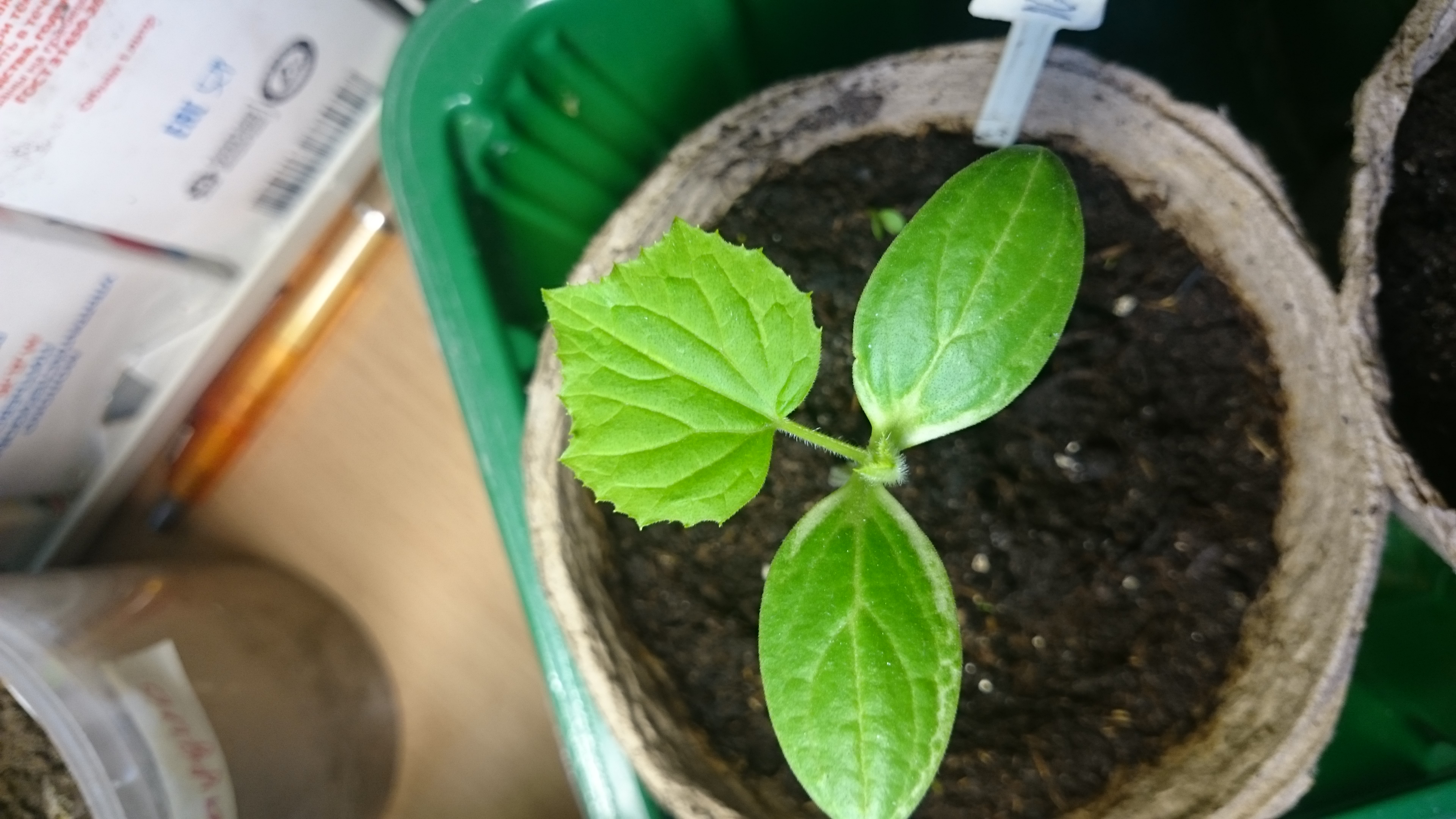 Посадила 3 шт. огурцов для прививки. Стебелёк тонюсенький. Как такой резать, ума не приложу.