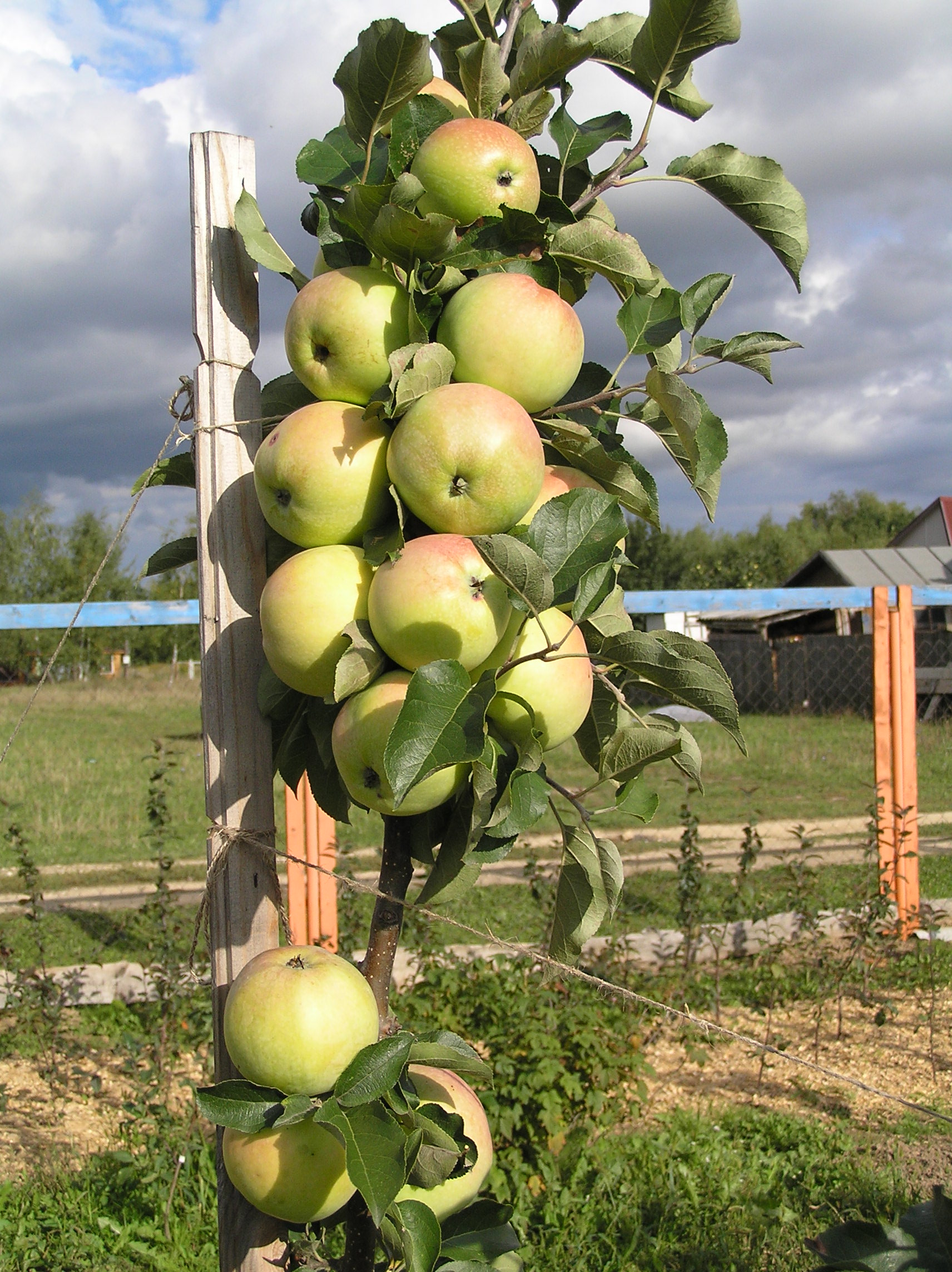Наверное, самый известный среди любителей колонновидный сорт. Для меня он знаменателен тем, что фактически стал родоначальником моей новой садовой коллекции, был посажен еще в далеком 2006 году. За этот период выдержал все невзгоды Природы и остается в отличной форме. Обрезкой этого дерева я особо не увлекался, наверное поэтому и никакой "классической колонны" из него не получилось. Сейчас высота составляет около 2,5 м и примерно столько же в диаметре. Для сравнения могу заметить, что схожий объем кроны у меня имеет Легенда - природный полукарлик, так же один из наиболее известных сортов В.В.Кичины.