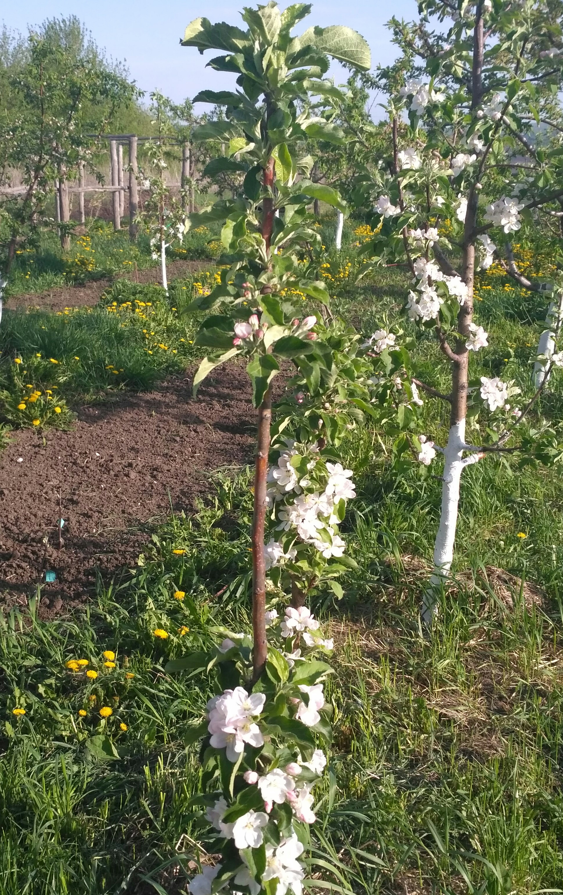 Действительно, по виду почти не отличимы, острые углы отхождения у всех. А у Вас разные источники этих сортов? Странно что Подарок Графскому получил повреждения. По описаниям от оригинатора он был выбран из сеянцев после зимы 78/79 за исключительную зимостойкость, чуть ли не выше чем у исходного сорта Вязниковка. И по поводу Белого иммунного - насколько уверены в его оригинальности. Дело в том, что я неделю назад разговаривал по его поводу с сотрудниками ВСТИСП. Уверили, что его никто не может продавать , пока он не пройдет госсортиспытания. Понятно что срезать черенок по знакомству могут, но официально его в продаже нет. Просто настораживает абсолютная похожесть разных сортов на Вашей фотографии. Особенно странно, что высокорослого ПГ, если это пятая по счету яблоня, вообще не видно на фоне МЗ, природного полукарлика, каковым он является по описанию?