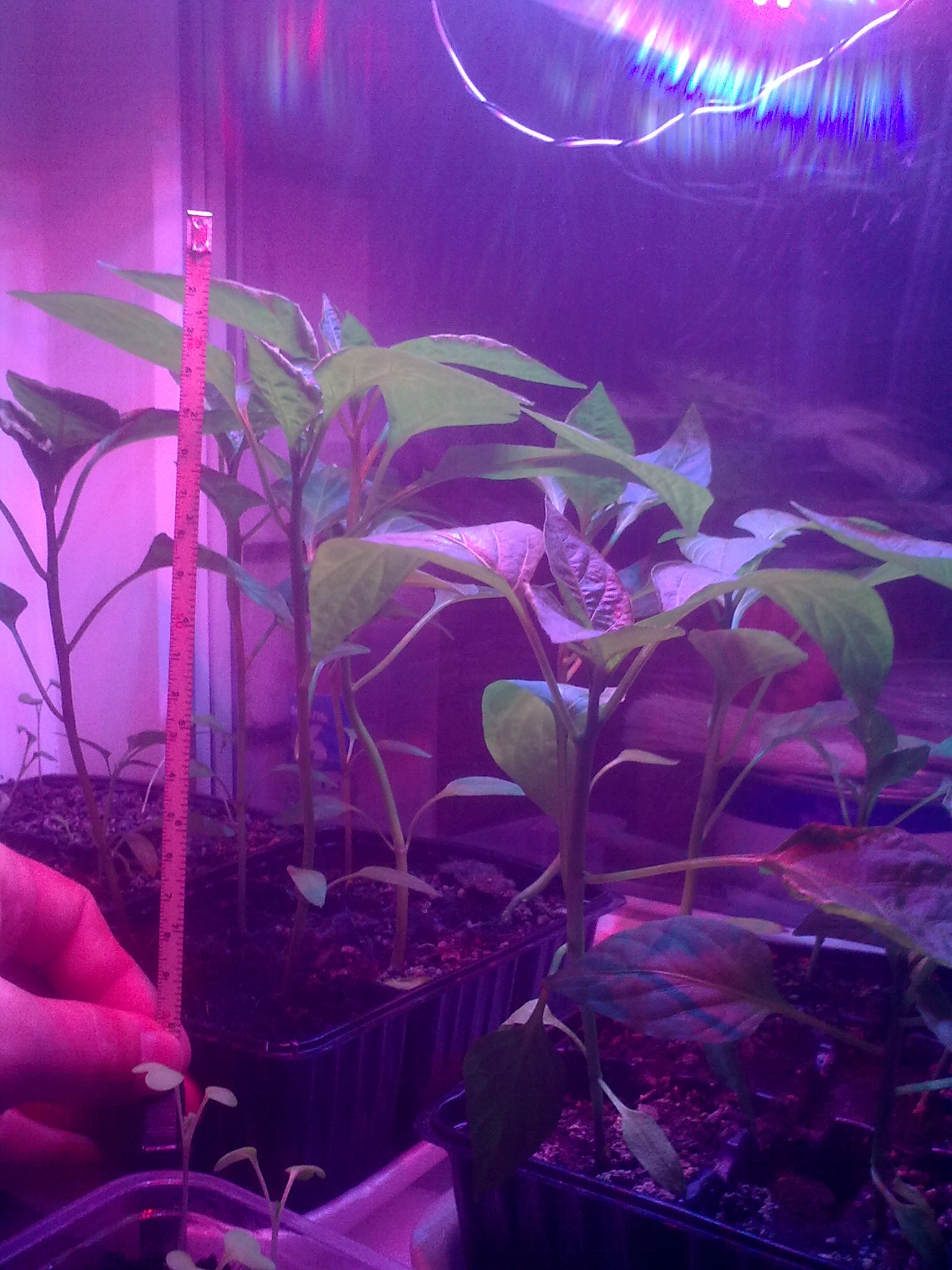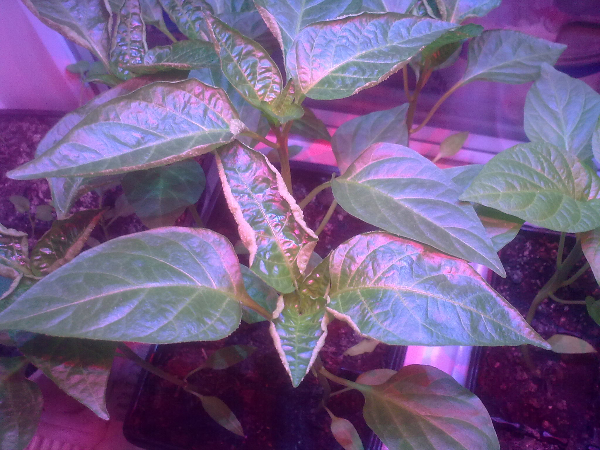 На фотках заметно синеватость,хотя светодиоды белые.Выше писал про прошлогодние ошибки-одна из них в узком спектре с преобладанием синего. На одном из Дракош появился бутон,на перцах пока нет.