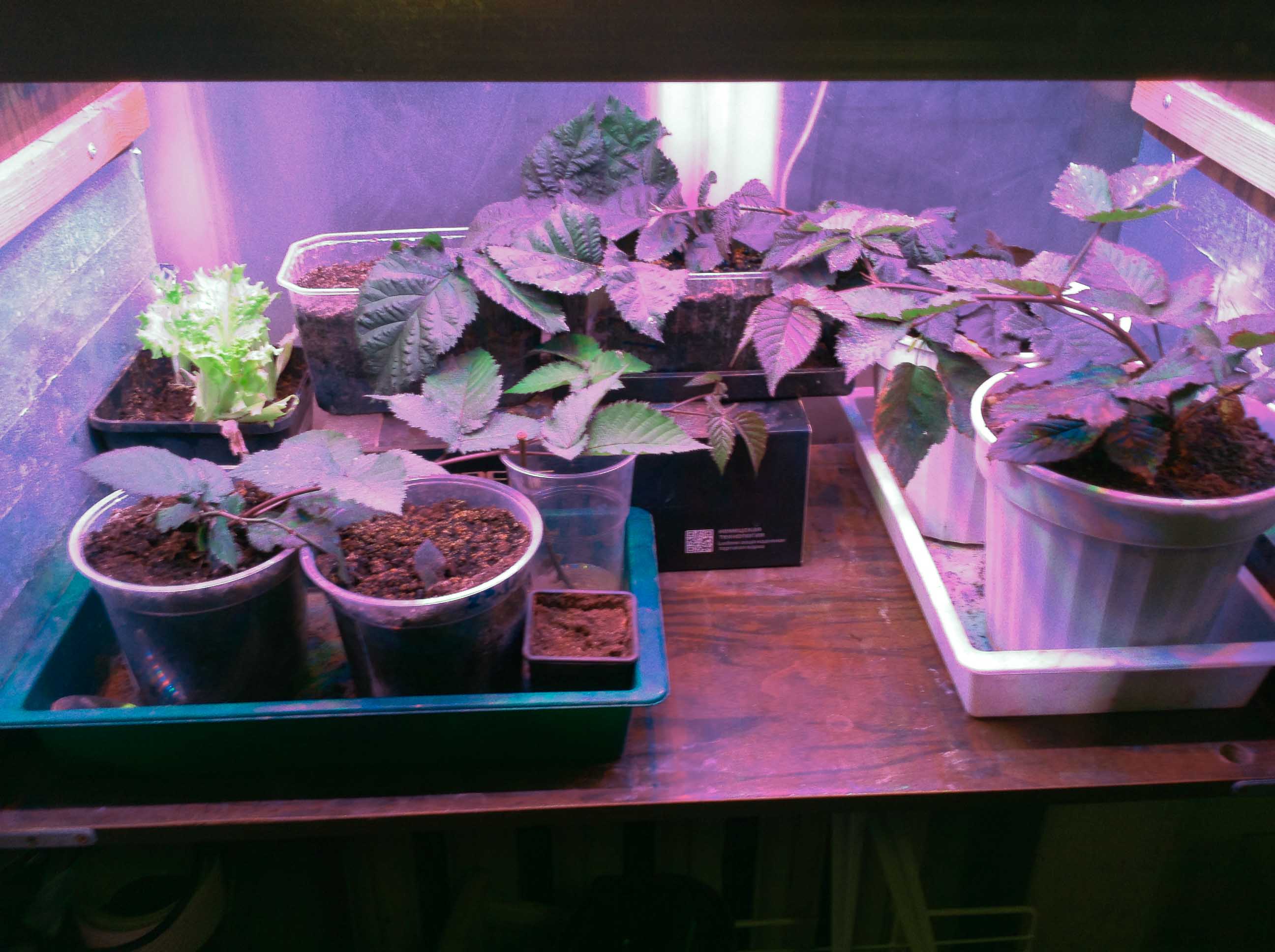 Третий сезон пошол, Сейчас саженцы ежевики выращиваю, зиму они коротают. В уголке салатик. Купил в магазине, срезал, осталось 3 корешка. Воткнул в больший контейнер и они пошли в рост. Фото конечно корректировал, а то синевато получается.