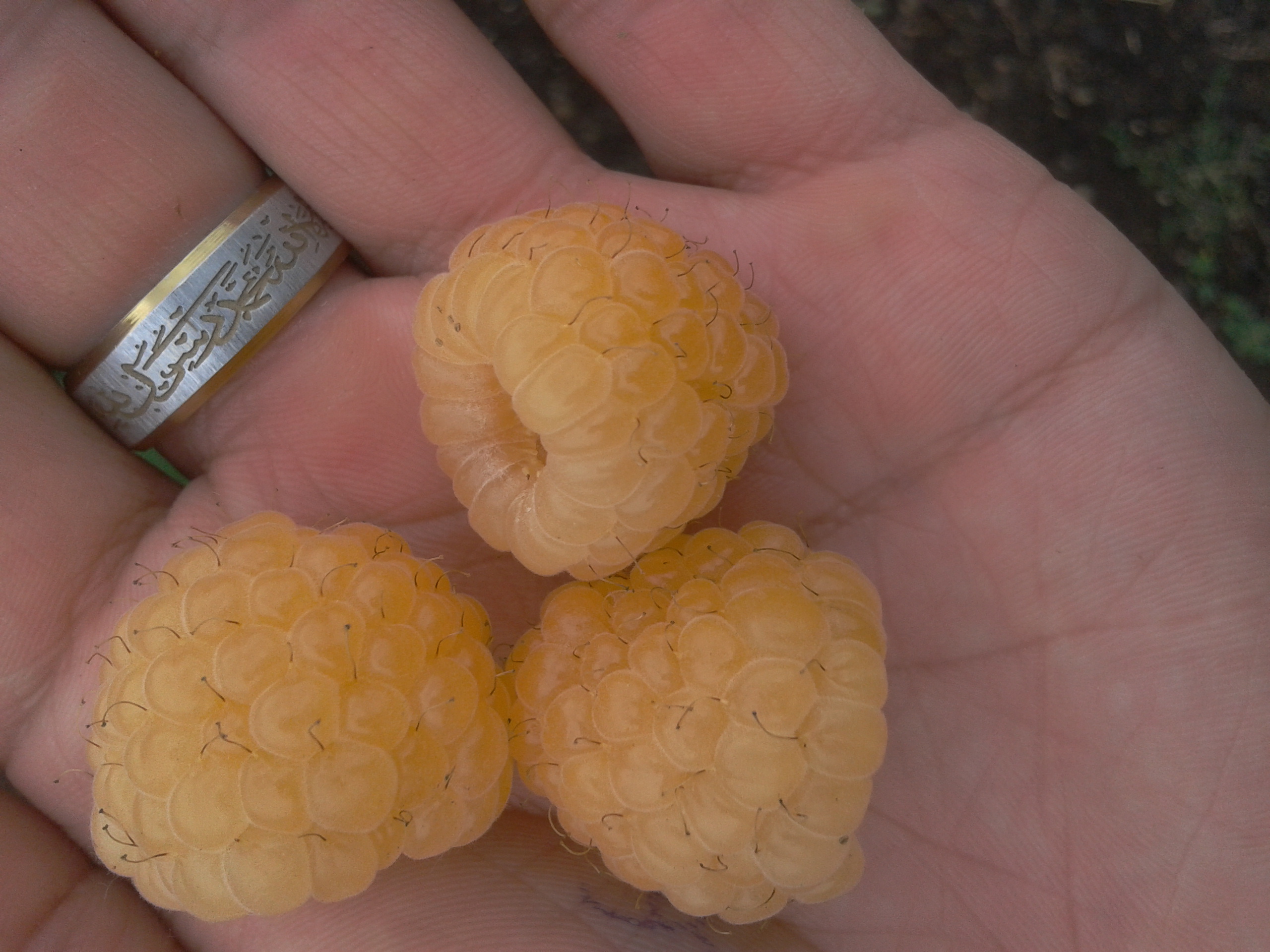 Поспели первые ягоды желтоплодной малины. Ну и год, жимолость - в конце мая, малина - в середине июня...