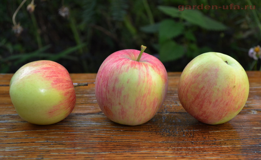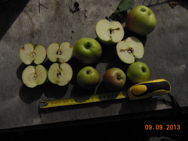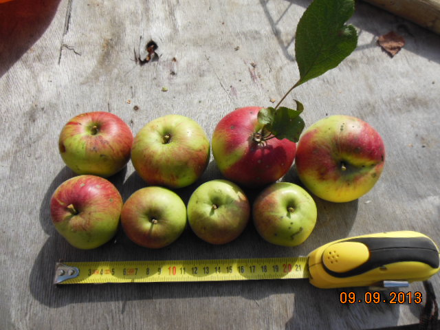 e. Размер – средний. Вообще по размеру (а также вкусу и форме) у меня было раньше впечатление, что дерево дает на удивление однородную продукцию (было впечатление, что типа хуже вкусного штрифеля, но лучше невкусного). Но в этом году все не так, что видно из фотографий. Размеры очень разнятся, вкус тоже. Да и форма кое-где неправильная. Это скорее всего объясняется обломами и соответствующей неравномерностью в сокообмене, а может быть это возрастное. По настоящему гигантский урожай у яблони первый.