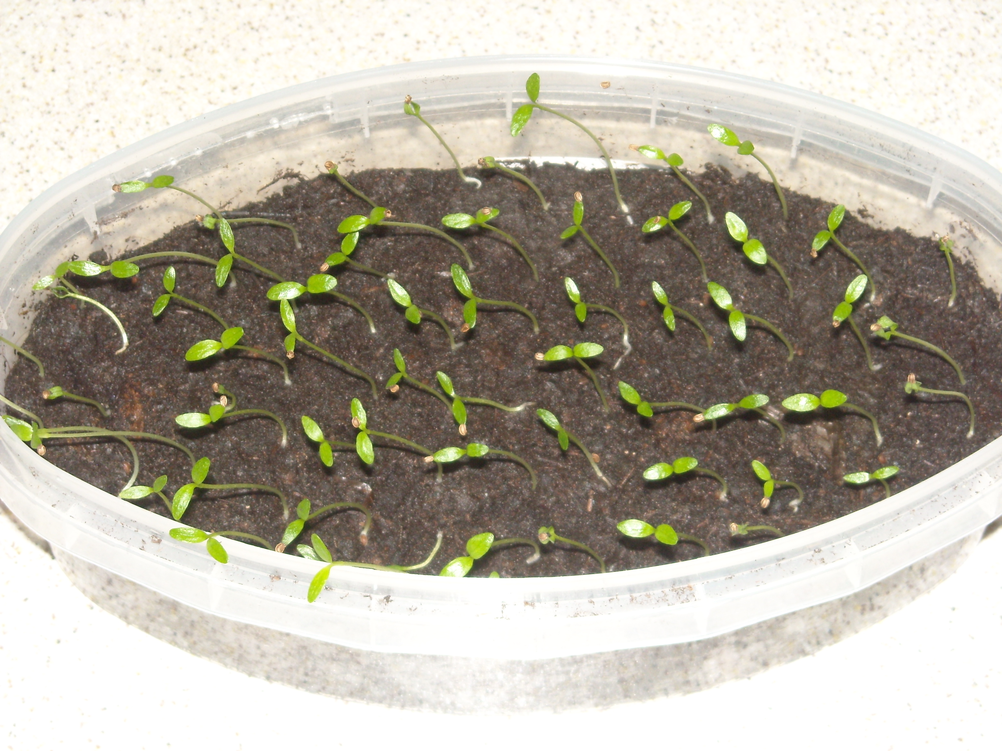 Уточняю. Ёмкость небольшая - коробка тетропаковская от сока, у которой срезан бок. И лук-чернушку Айлса Грайг тоже так сею и не рассаживаю потом.
