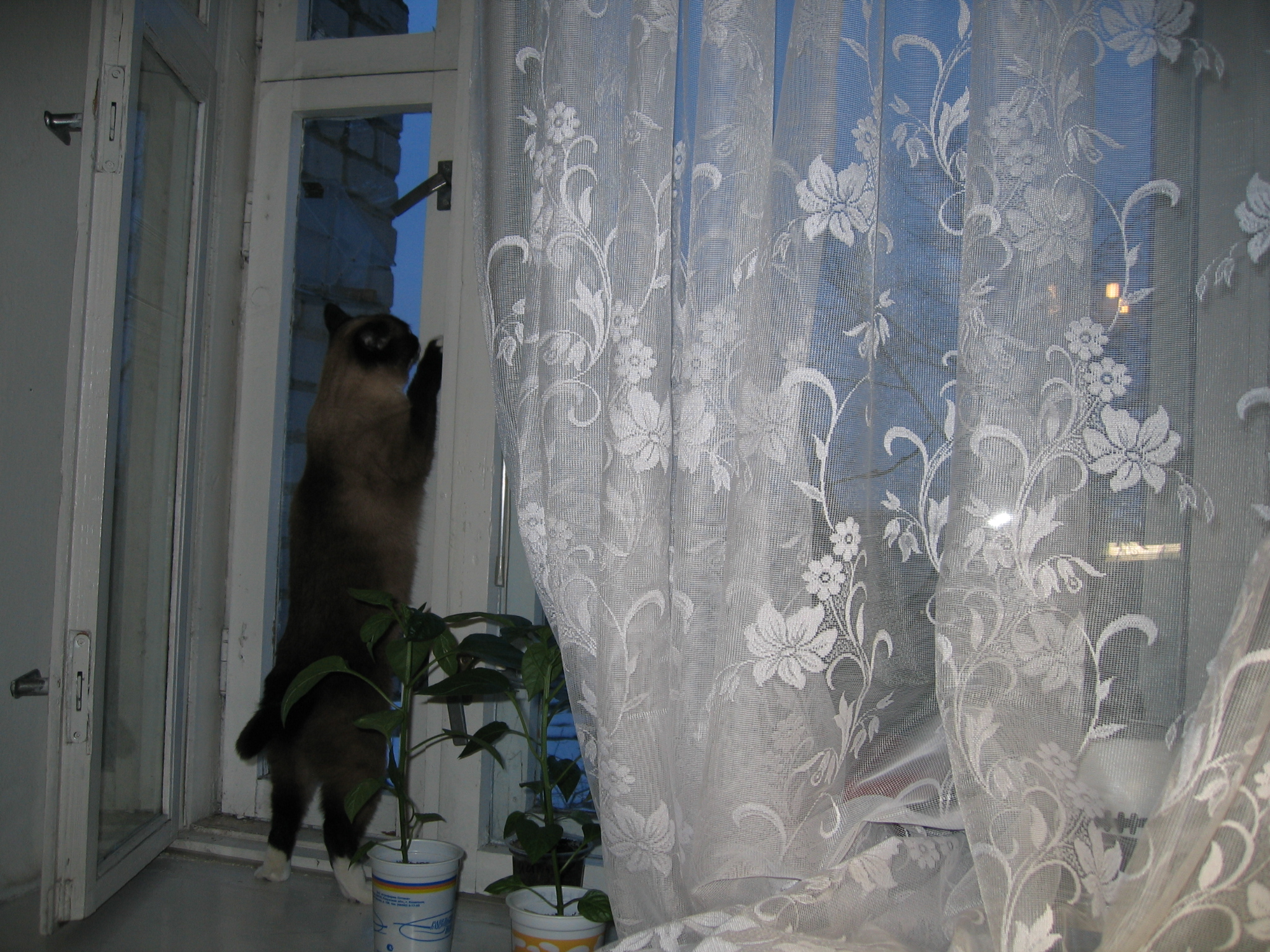 Да, перчик зацветет скоро....а котик - тайчик, с белыми носочками.... , мааасик, на улицу хочет или птичку увидел....