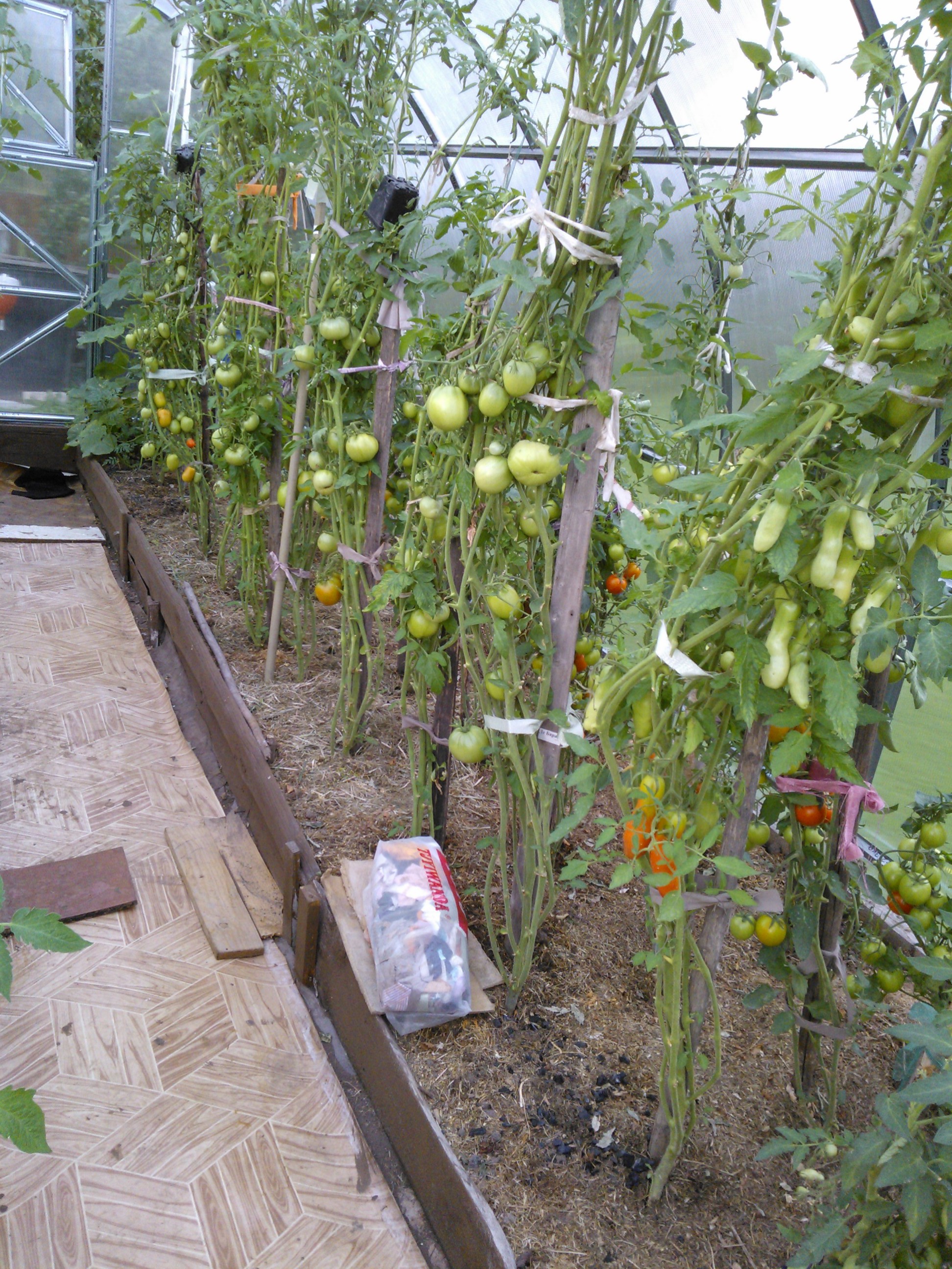 У меня почти все сорта сбросили 3-4 кисти. Только гибриды удержали. И сейчас нижние висят и на макушках наливаются. Теплица выглядит убого, нижние уже общипали, в принципе, хватит на всех, но на сок и не знаю даже, останется ли чего.