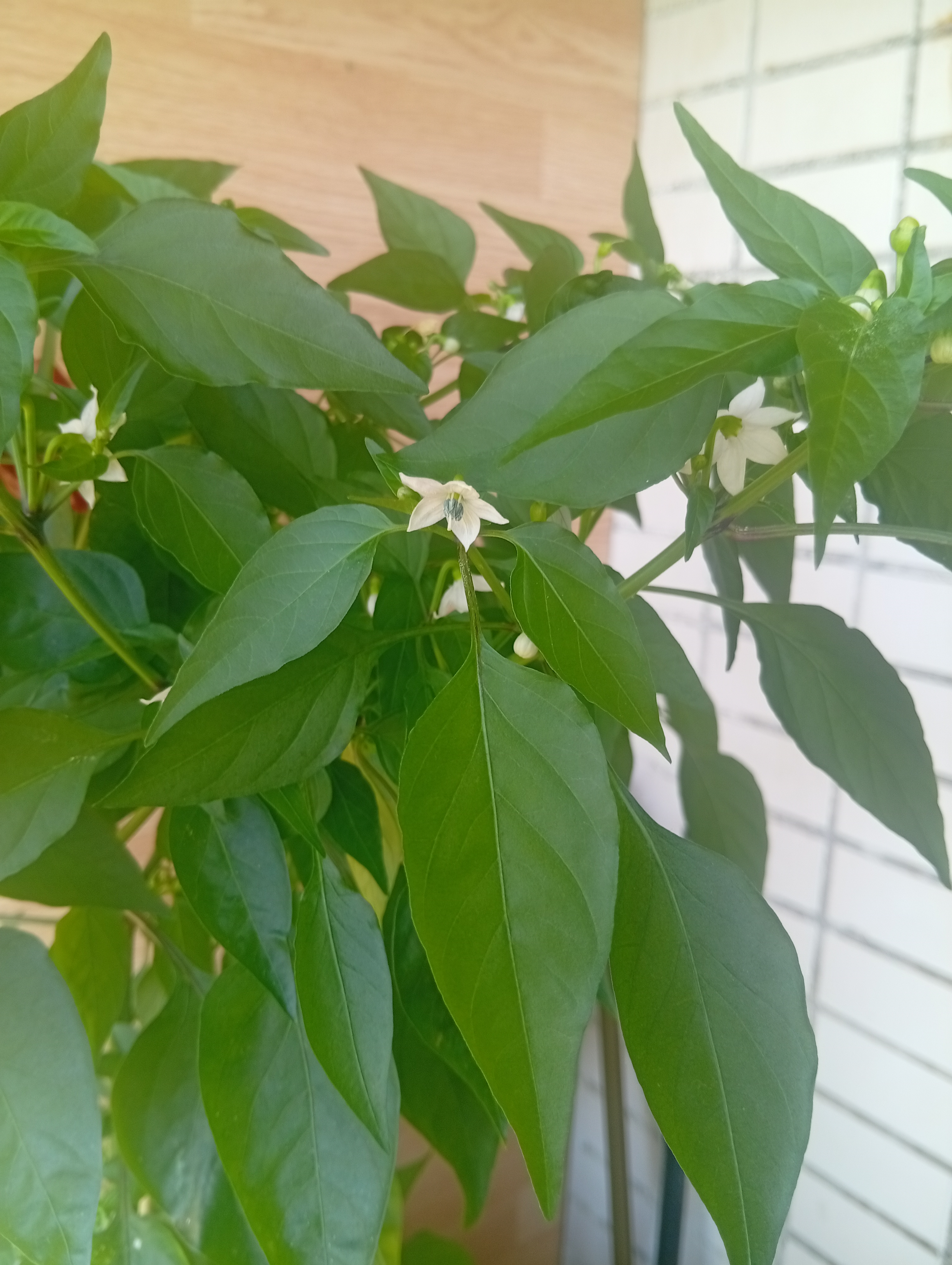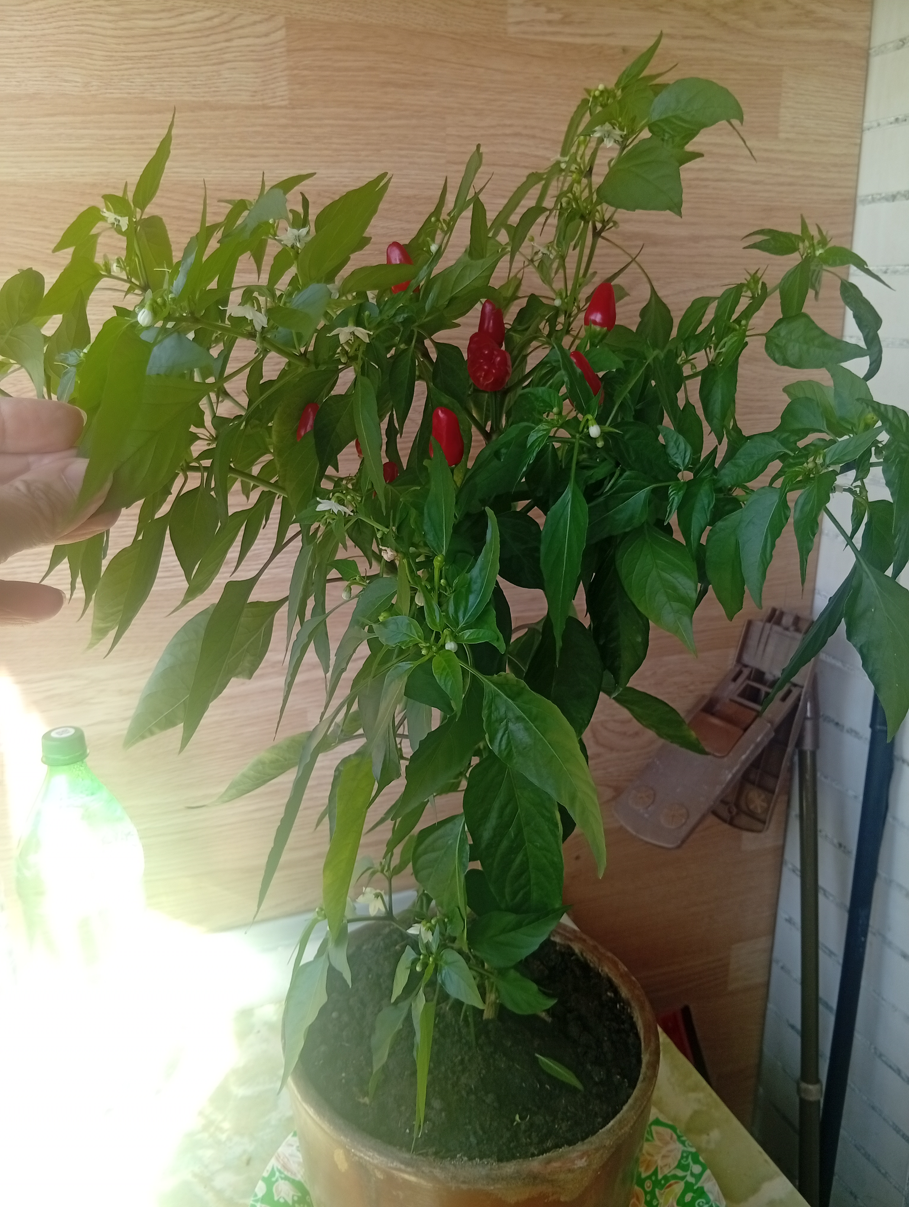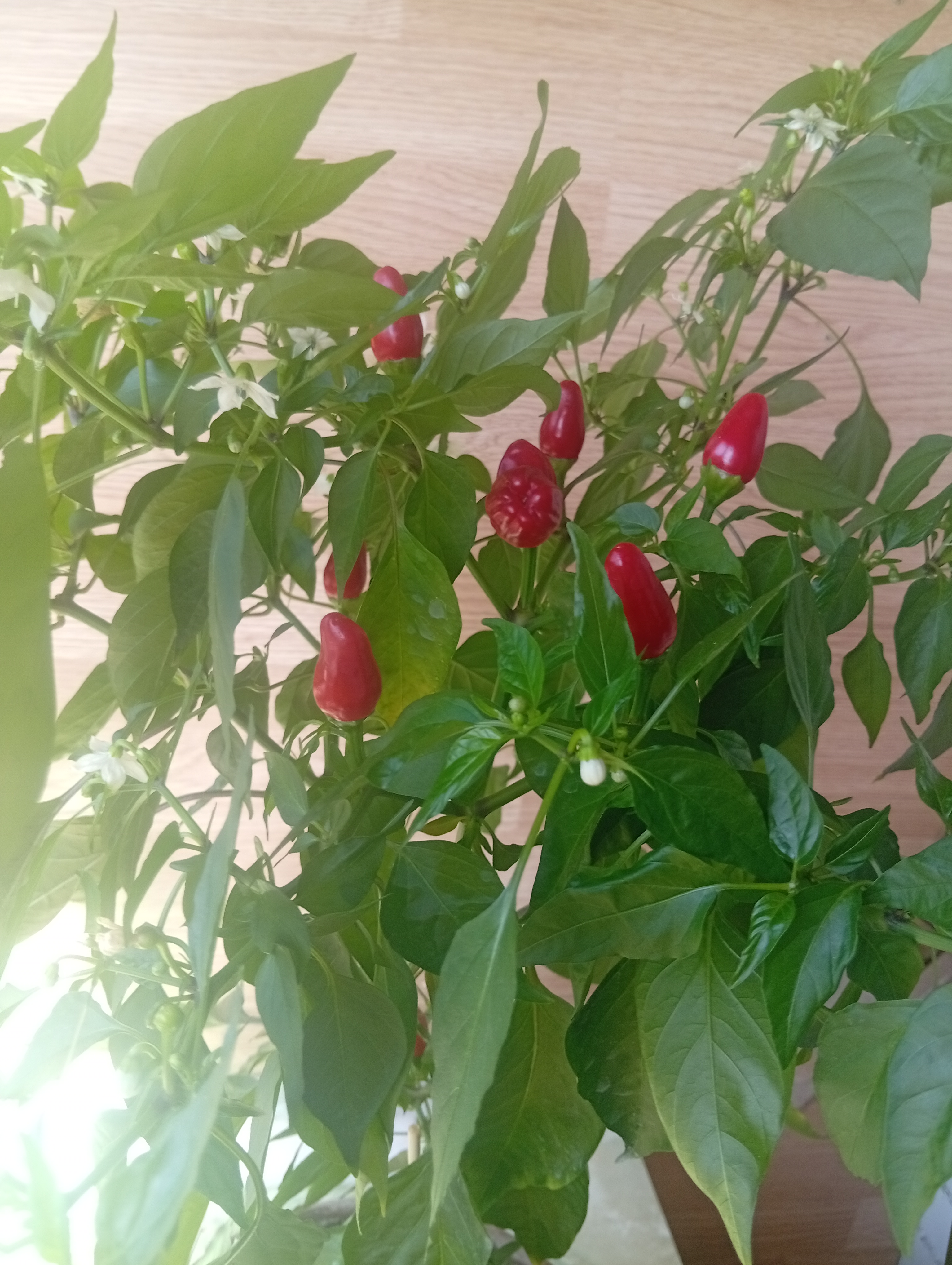 Каенский острый не пошёл. Большое дерево, маленькие перчики и мало. Нам на соусы нужны крупные.
