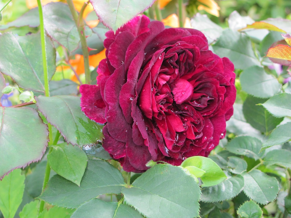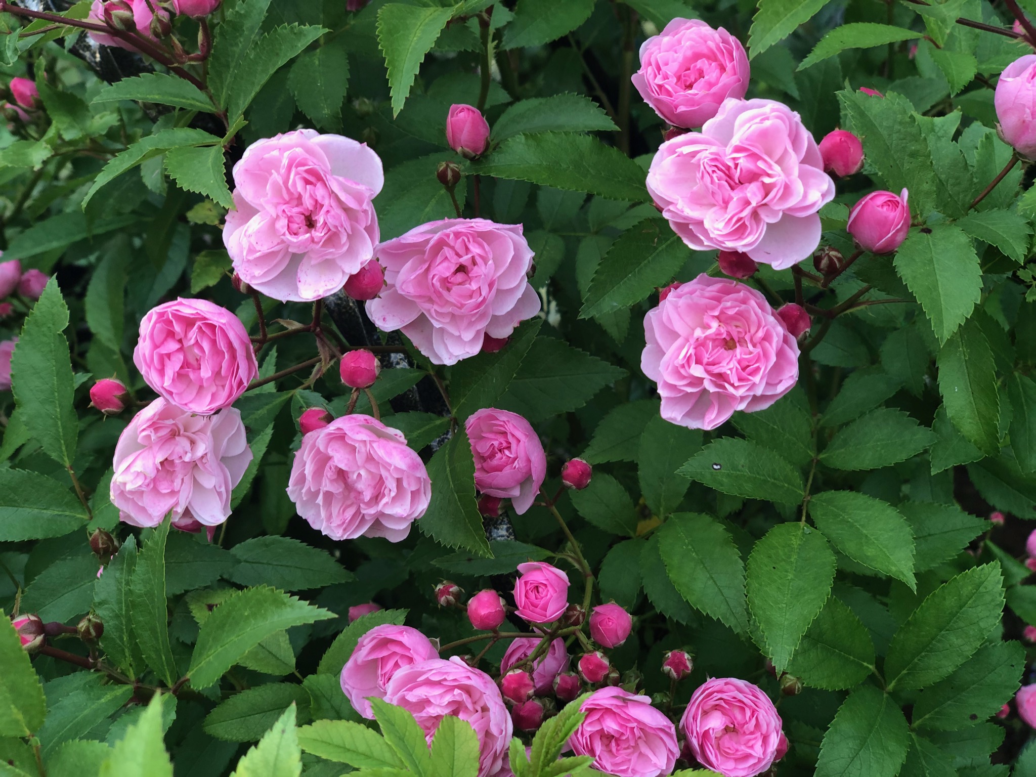Роза Абрахам Дерби обильно цветёт. Второй год всего у меня, куст раскидистый. Цветов много, но красивого фото всего куста сделать не получается.