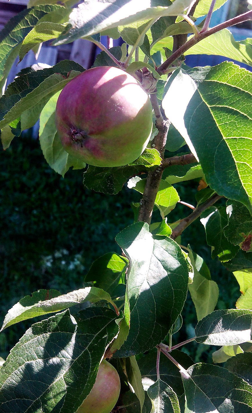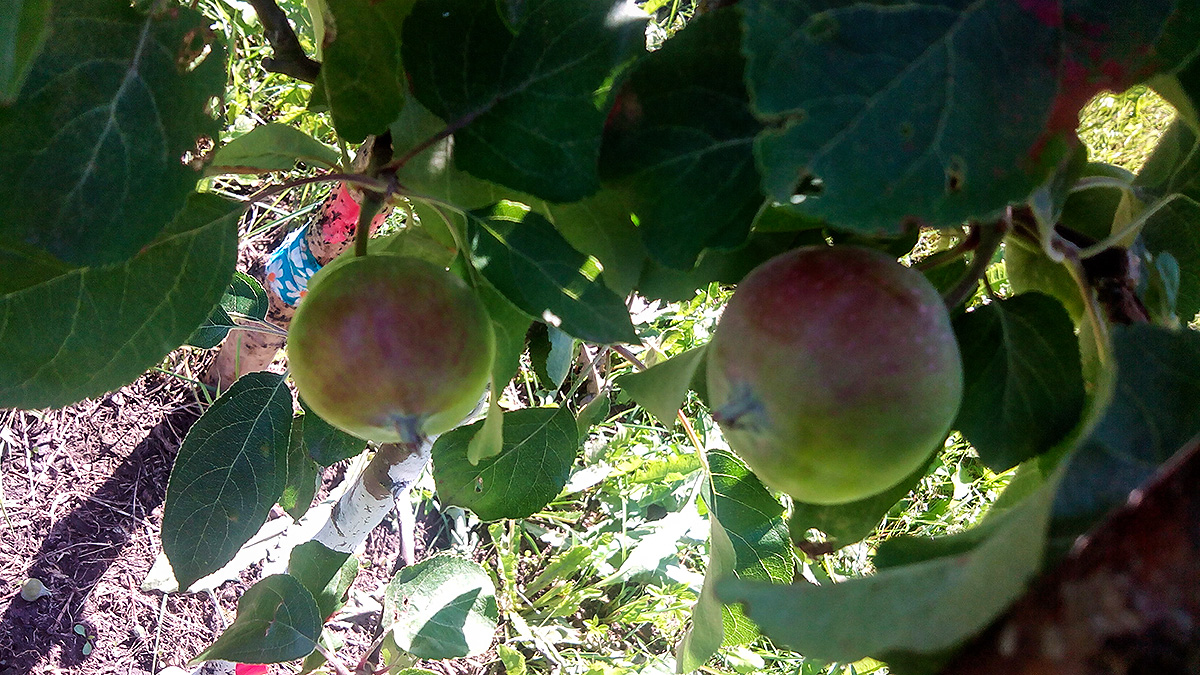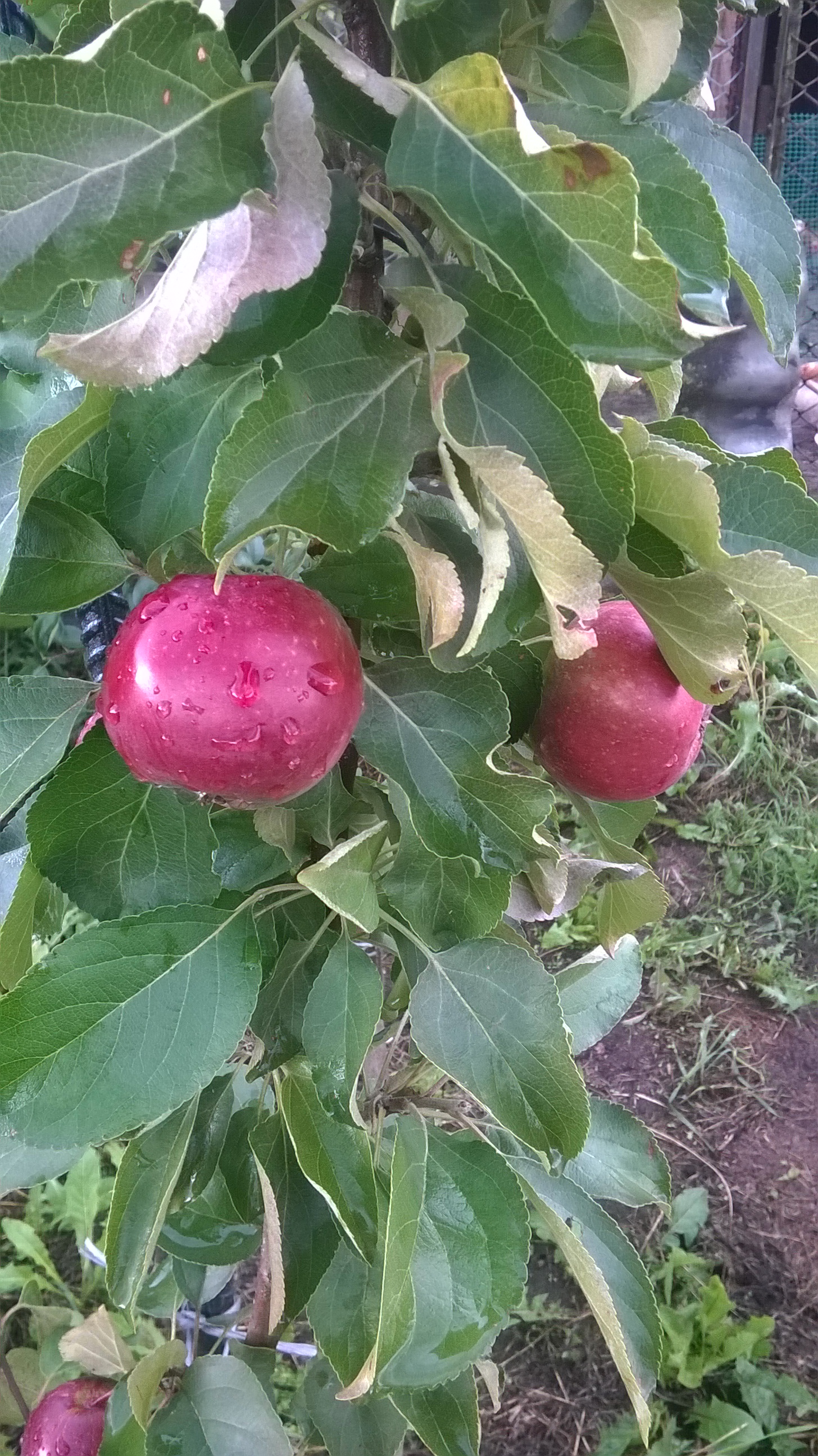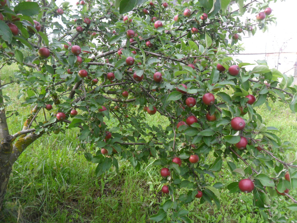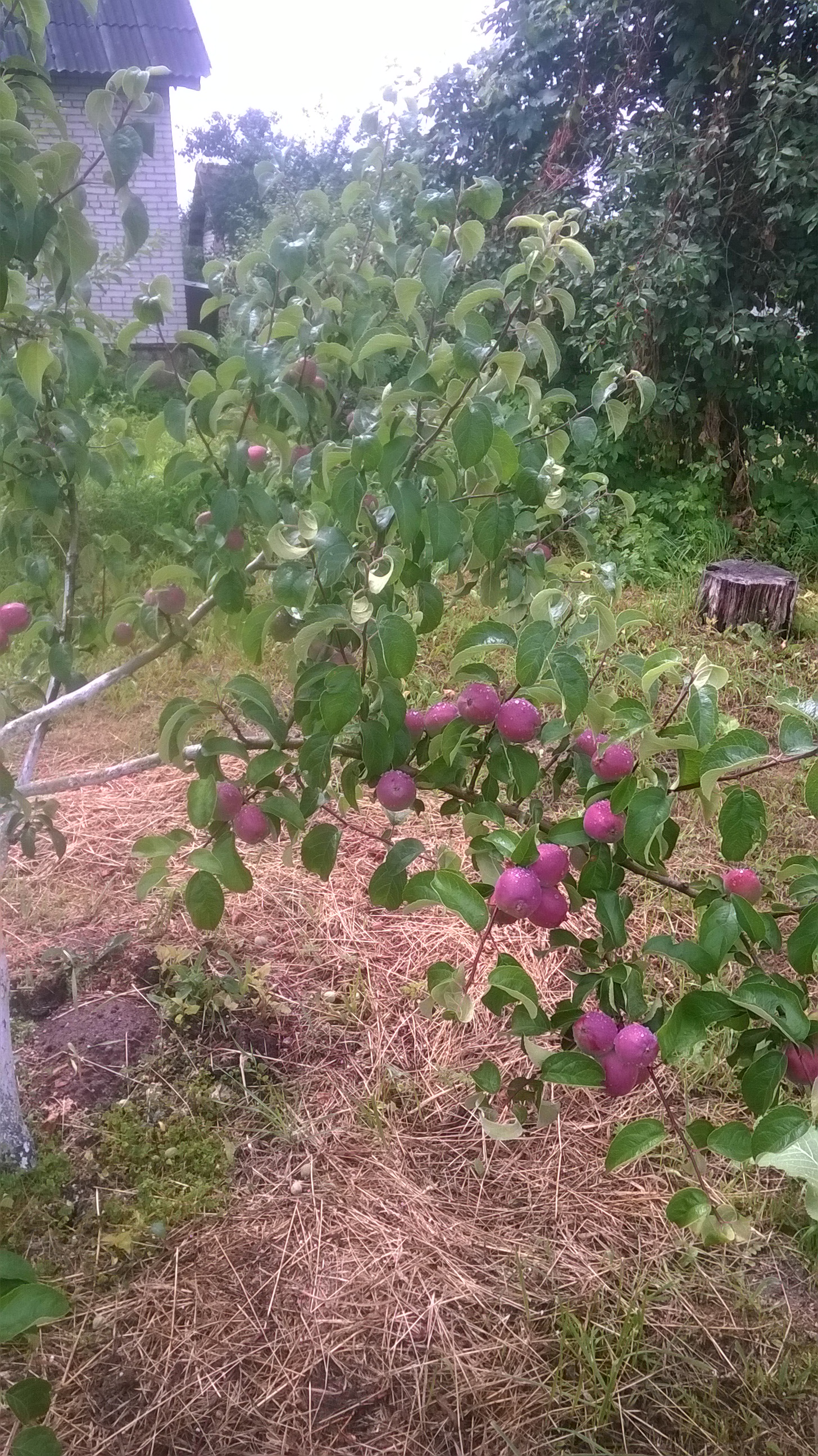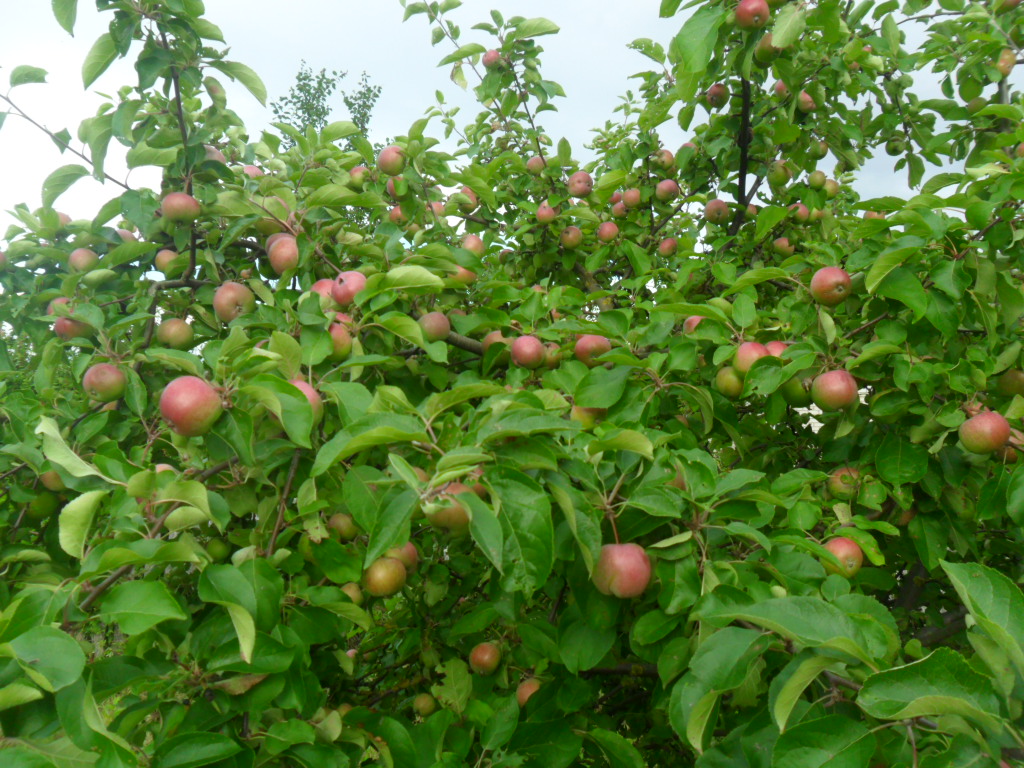 Деревья что постарше, тянут урожай добросовестно. Молодёжь 3-4 летки скинули завязь за редким исключением. Оставив по 5-7 яблок на радость хозяину. Оно и к лучшему. Пускай крепнут. Зорка, Сябрына в половину меньше. Молодым деревьям банально не хватает влаги.