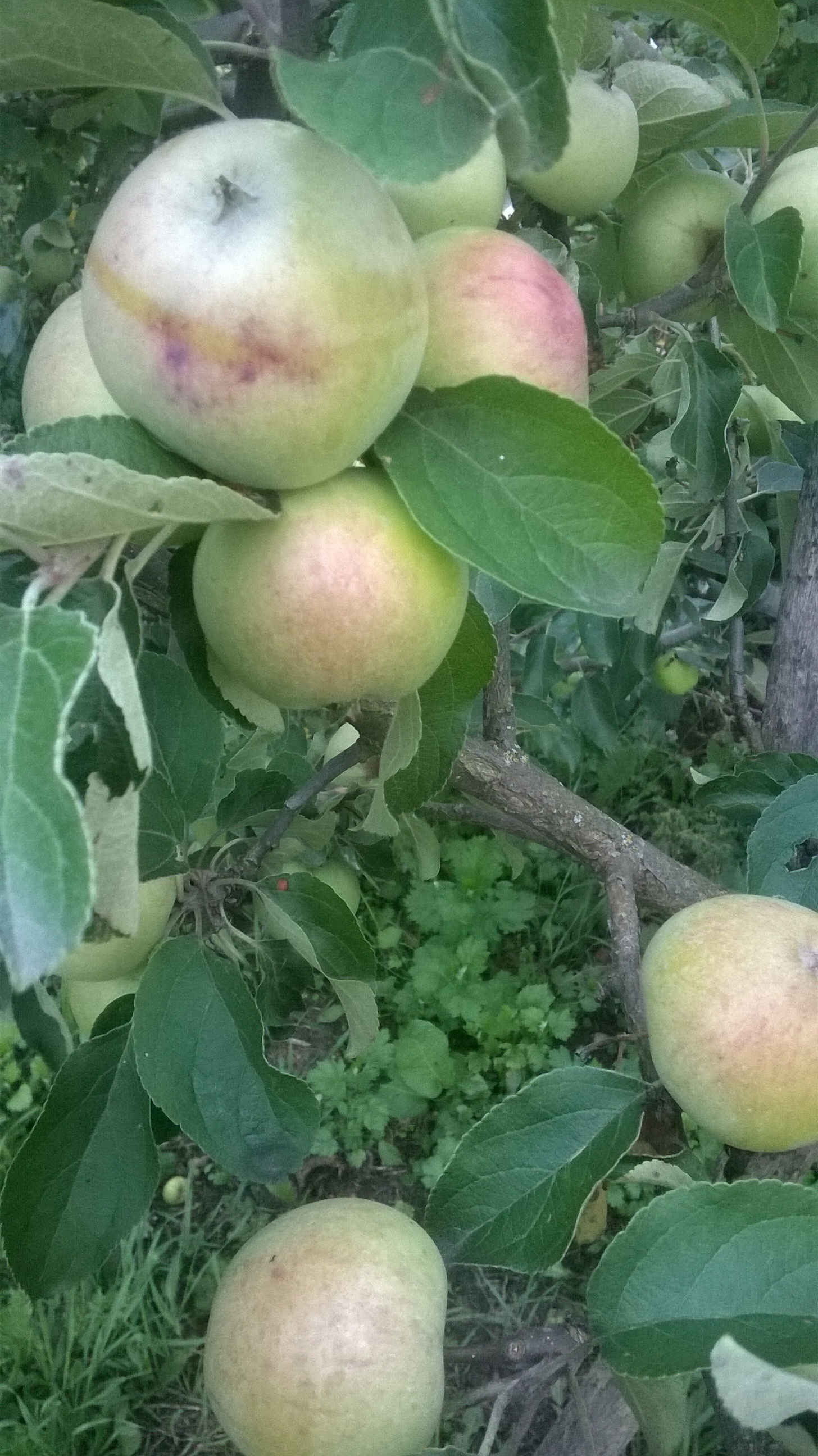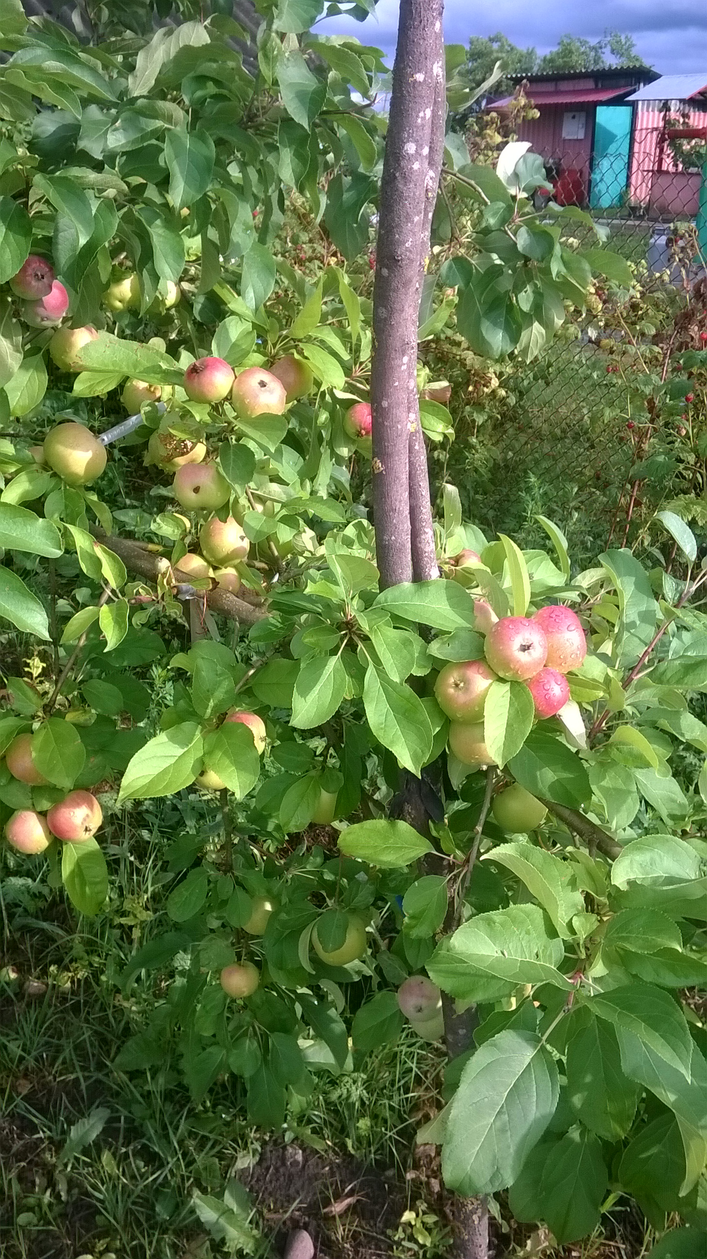 Коваленковское, наверное, не сбросило завязи нисколько, висят огромными гроздьями. Чтобы не обломались ветки нещадно удаляю часть яблок.