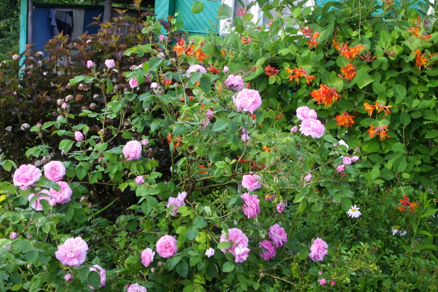 Леночка, я вот не могу сказать, что мне это сочетание самой нравится. Просто Марина советовала краснолистный пузыреплодник с розами, вот и нашла... Для классики там лишняя жимолость. Но пересаживать не буду, там такие корни уже, жалко тревожить. Я на них смотрю по отдельности. Очень люблю жимолость Брауна.