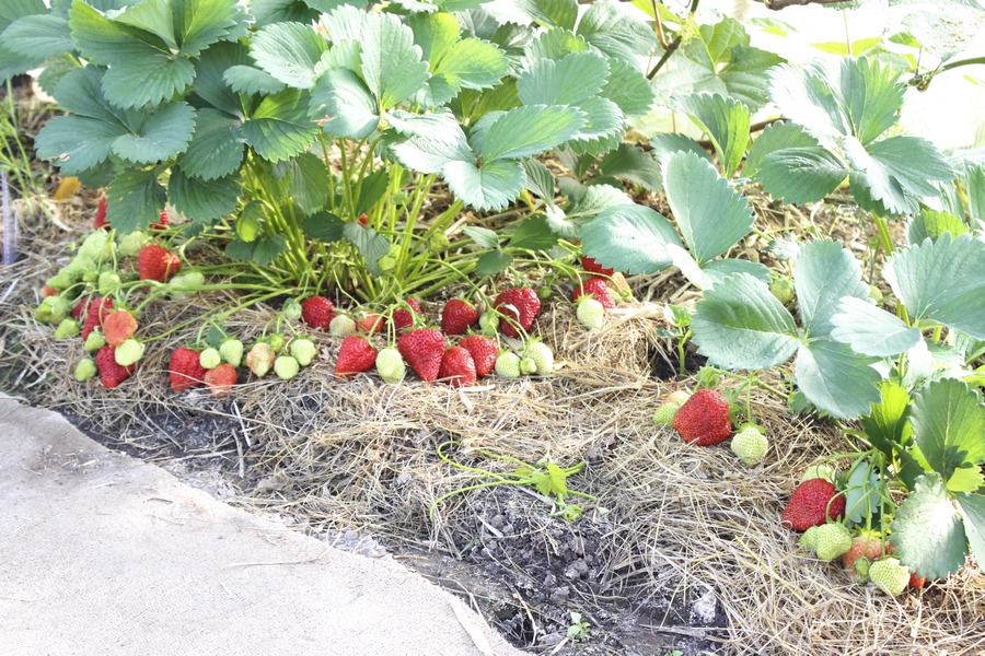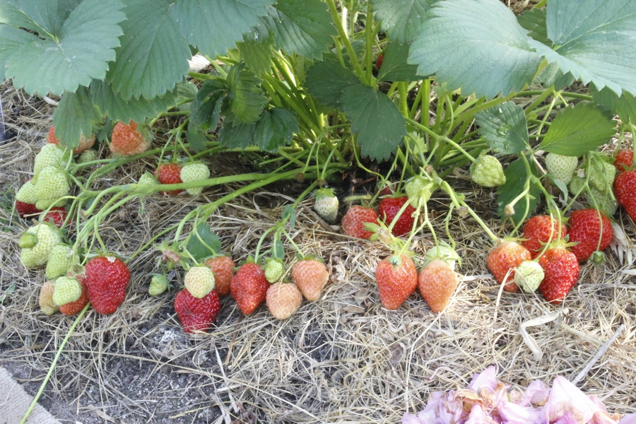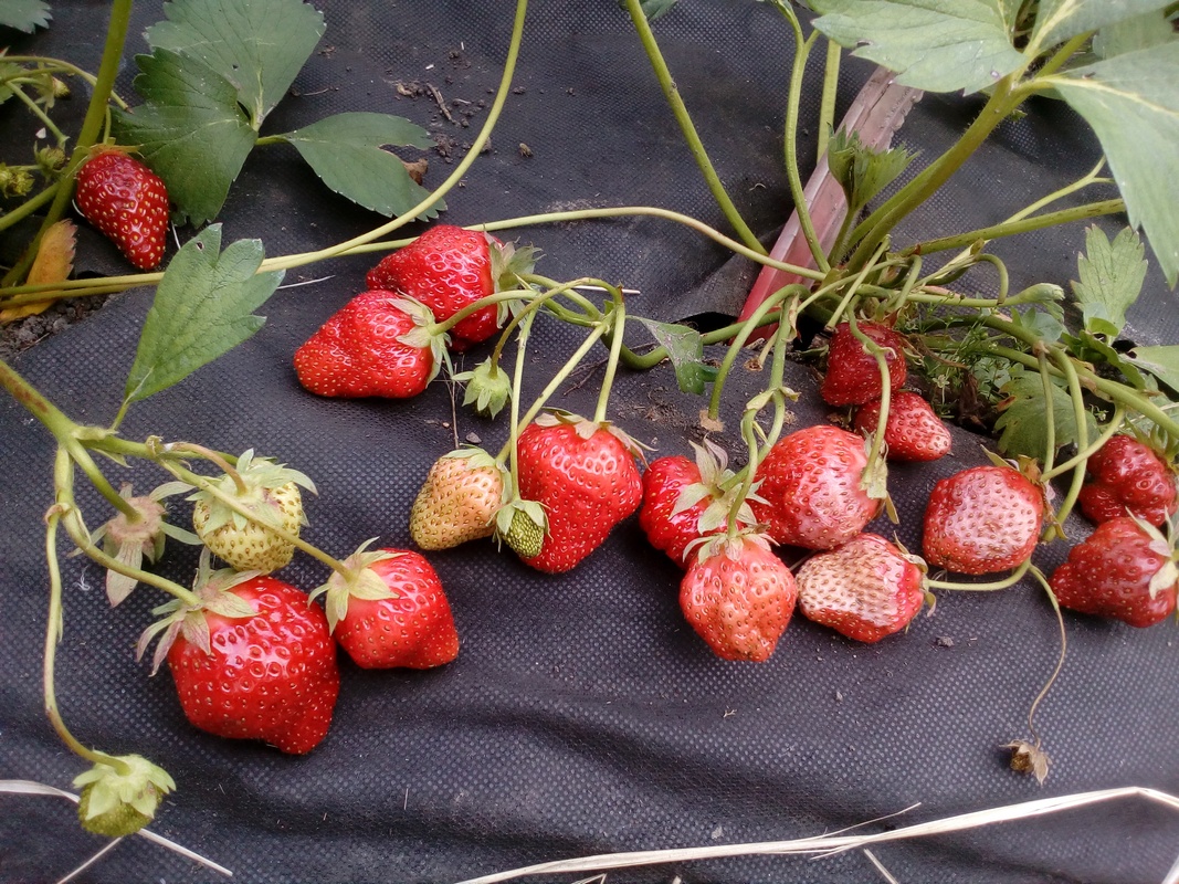 Поспевают сорта Кристин, Ирма, Эви 2, Летиция( сверху, слева направо)
