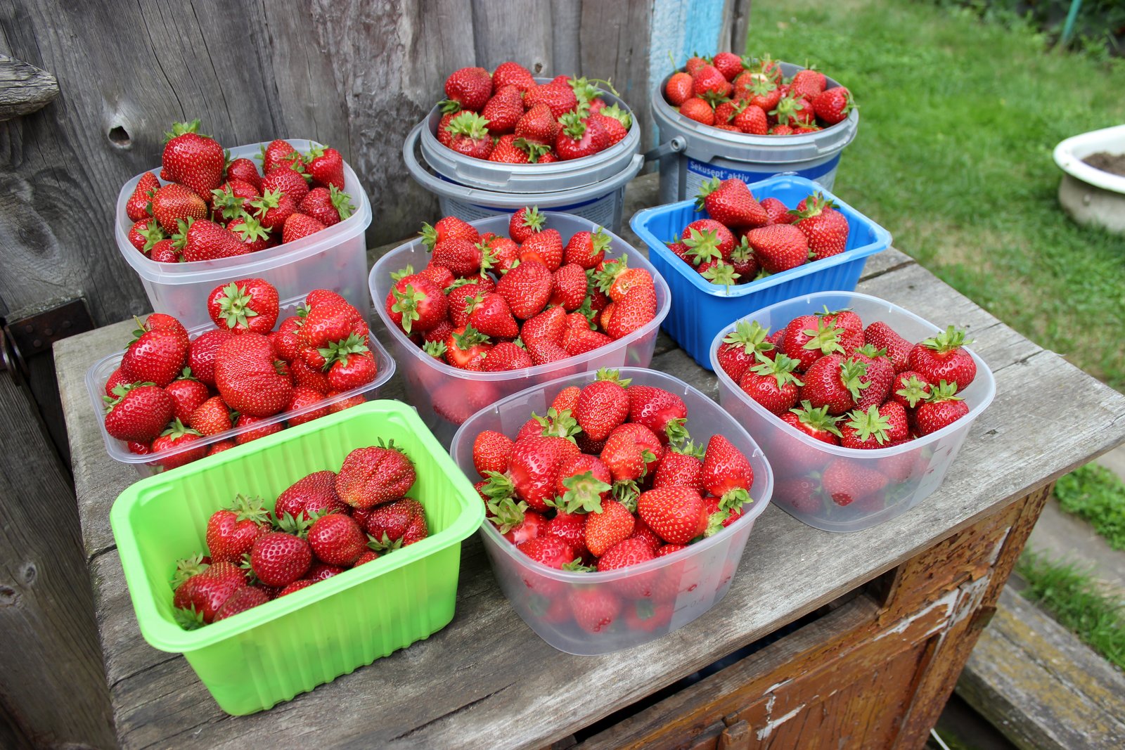 Общий урожай прошедших выходных в деревне. Спасибо Азии и Сирии за качество ягоды! А это потери урожая. В пакетах - пораженная серой гнилью ягода, в контейнерах частично поврежденная. Можно обрезать и пустить в переработку. Потери приличные, но в основном за счет узкой 70-см. грядки. Это был последний сезон выращивания в ней земляники. В следующем году переезжаю в грядку шириной 1 м., получится итого на 8 кустов больше. Посажу Венди, Мальвину, Сонсейшн (порядка 12-16 кустов), остальное место займу Сирией и Азией пополам. И буду наслаждаться качественной вкусной ягодой.