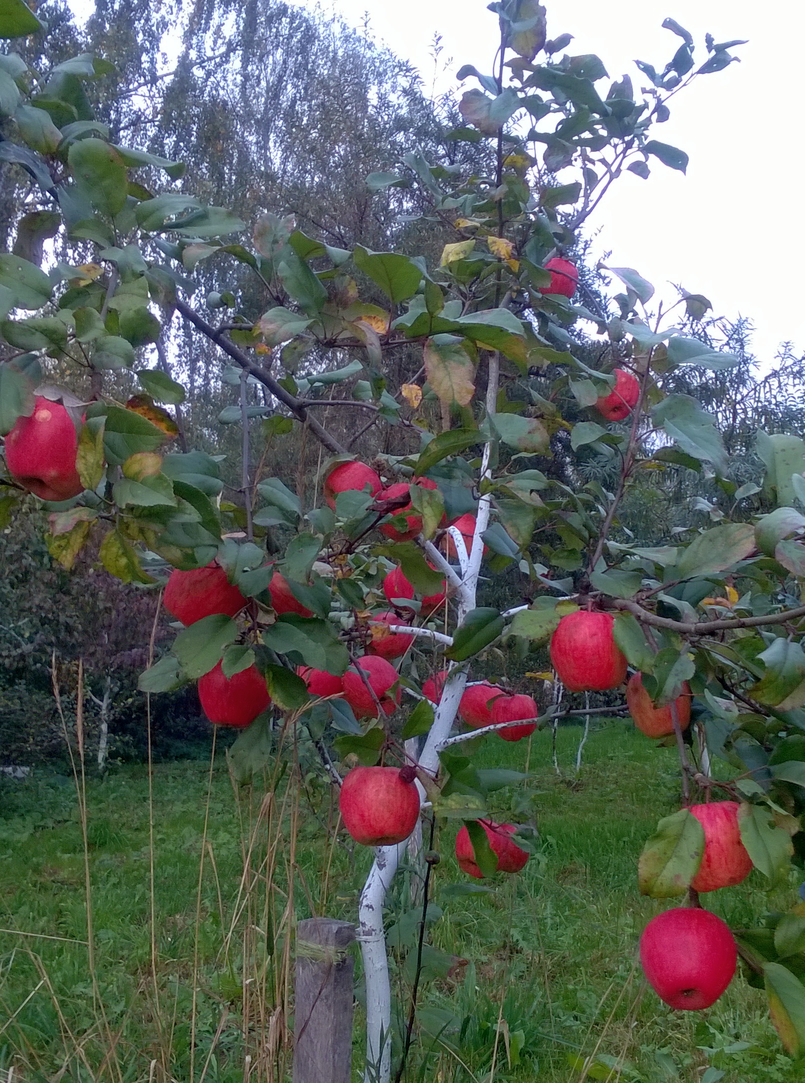 Фото вчера. В прошлом году бы к этой дате уже ссыпались. Но не собираем - в изобилии кушаем и сохраняем более вкусные. Но красивое деревце - пусть растёт.