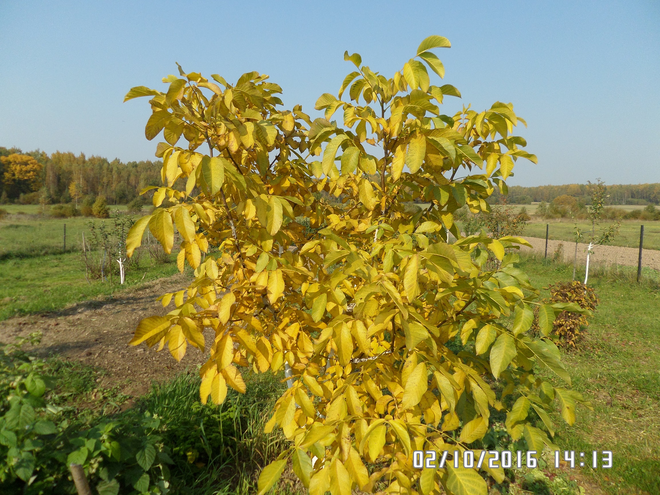 В этом году впервые за четыре года благодаря внекорневым подкормкам кристалоном коричневым и калимагнезией смог наблюдать осеннюю раскраску своих орехов. Остаётся вопрос, можно ли таким способом пока деревья молодые, их воспитать, или и это и так должно произойти с годами адаптации к новым условиям произрастания.