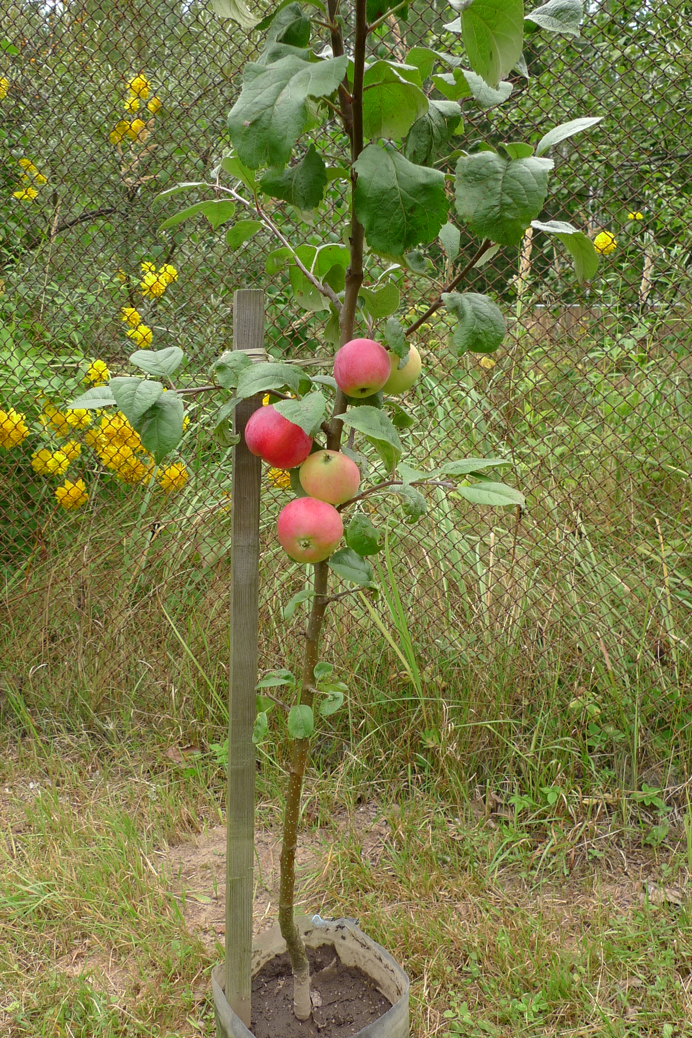 Весной зацвёл однолетний саженец (на семенном подвое), в сентябре порадовал пятью яблочками (плюс заплодоносили прививки в кроне). Вкус очень достойный, кисловато-сладкий. Интересная особенность – внешне одинаково зрелые плоды могут оказаться с совершенно разным типом мякоти, либо скалывающейся и хрустящей (но не грубой), либо нежной с «вязковатой» консистенцией. Сочность в обоих вариантах на высоте. Специально консультировался у Витала – он подтвердил, что это является двумя последовательными стадиями зрелости Заветного. Получается, Заветное – сорт на любой вкус, только любителям «похрустеть» надо употреблять его пораньше (как и снимать для хранения), а любителям нежной мякоти – подольше выдерживать на дереве. Лично моё сердце безусловно покорил хрустящий вариант. Яблочки мелкие, уходят как семечки :-)