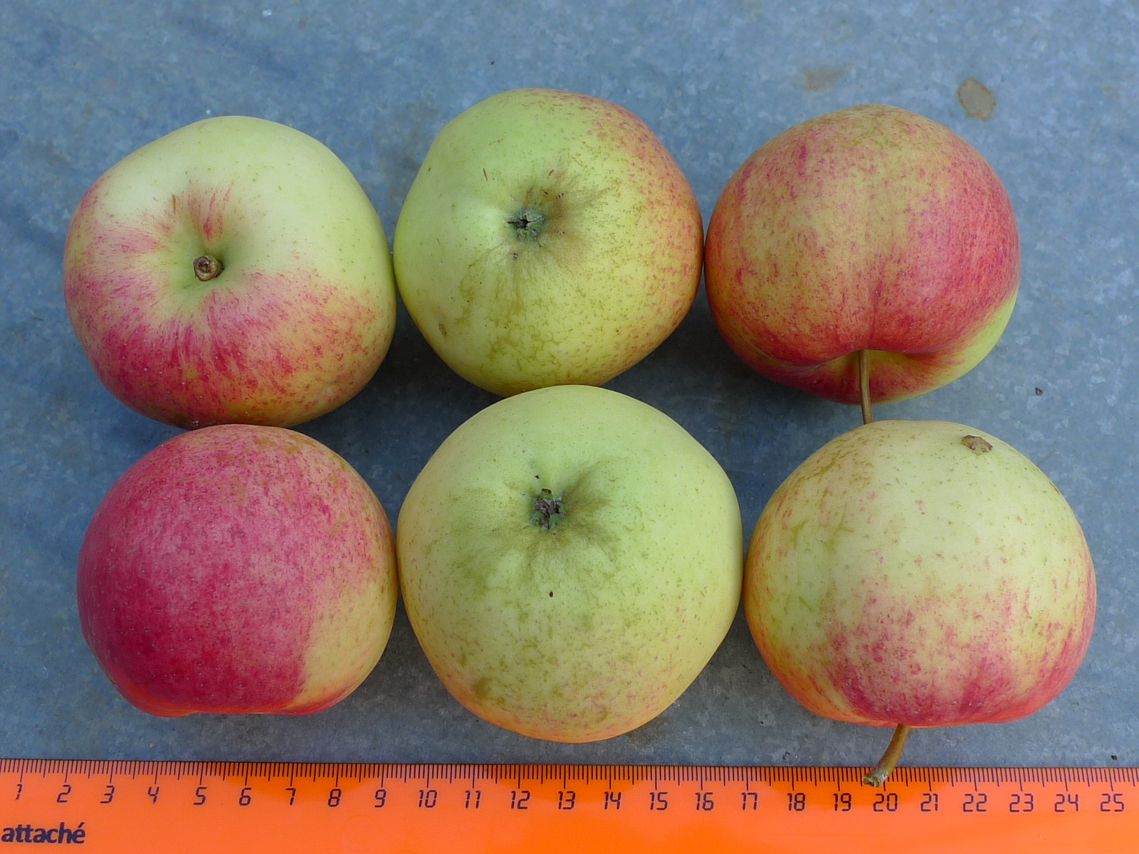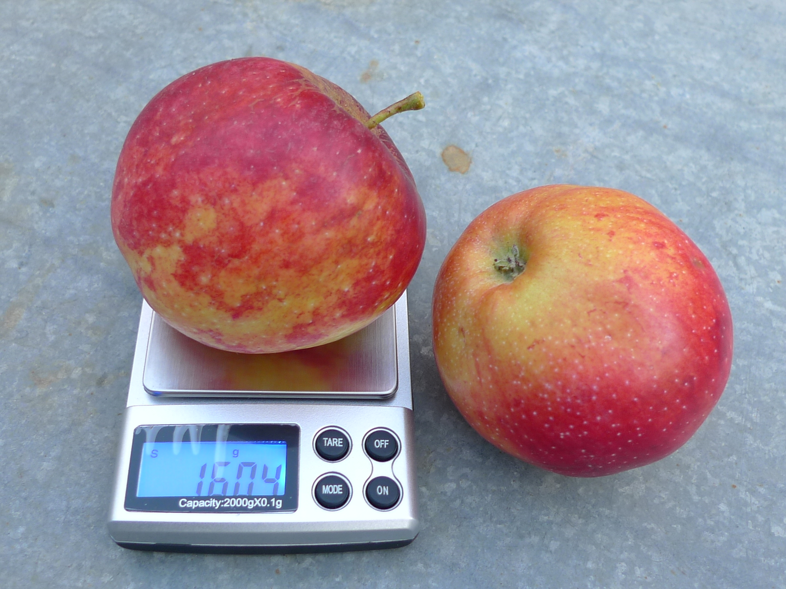 Плоды долго висели на дереве набравшими размер, но не созревшими, потом за одну тёплую сентябрьскую неделю резко набрали румянец и зрелость. Вкус оказался кислее, чем в прошлом году (сахаров сорт всё же не добрал), но всё же без избыточной кислоты, приятный. Характерно, что одновременно с Мечтой пробовал созревшую несколько раньше Мелбу (прививки Мечты как раз на её дереве) – так вот, по соотношению сахар/кислота Мелба оказалась кислее Мечты.