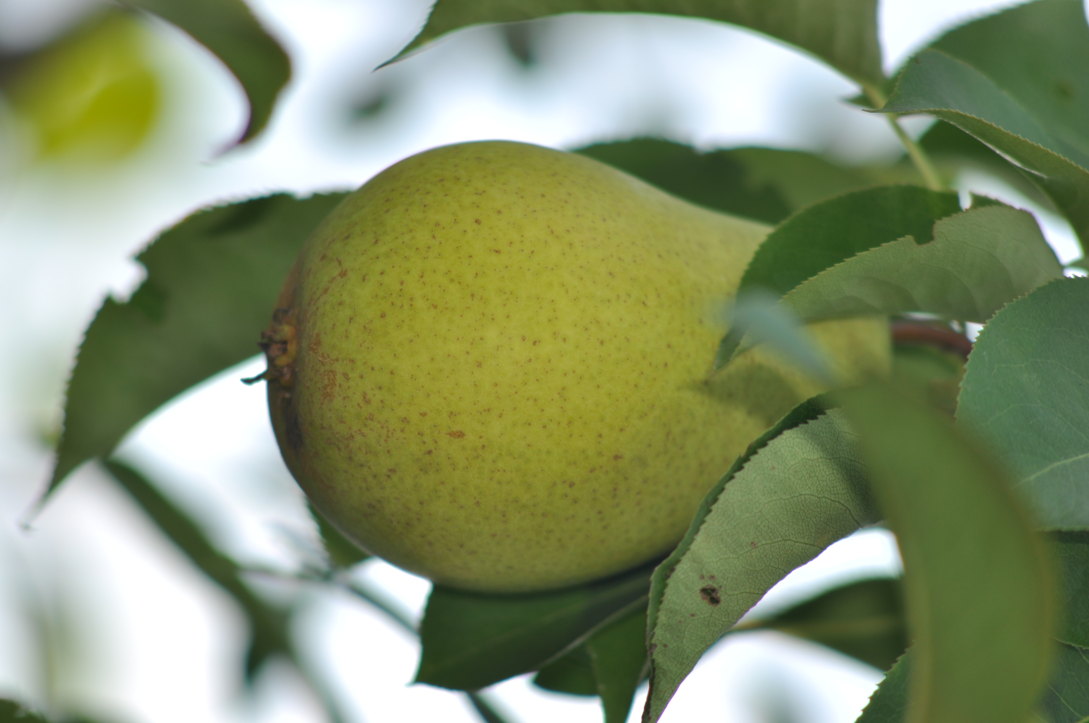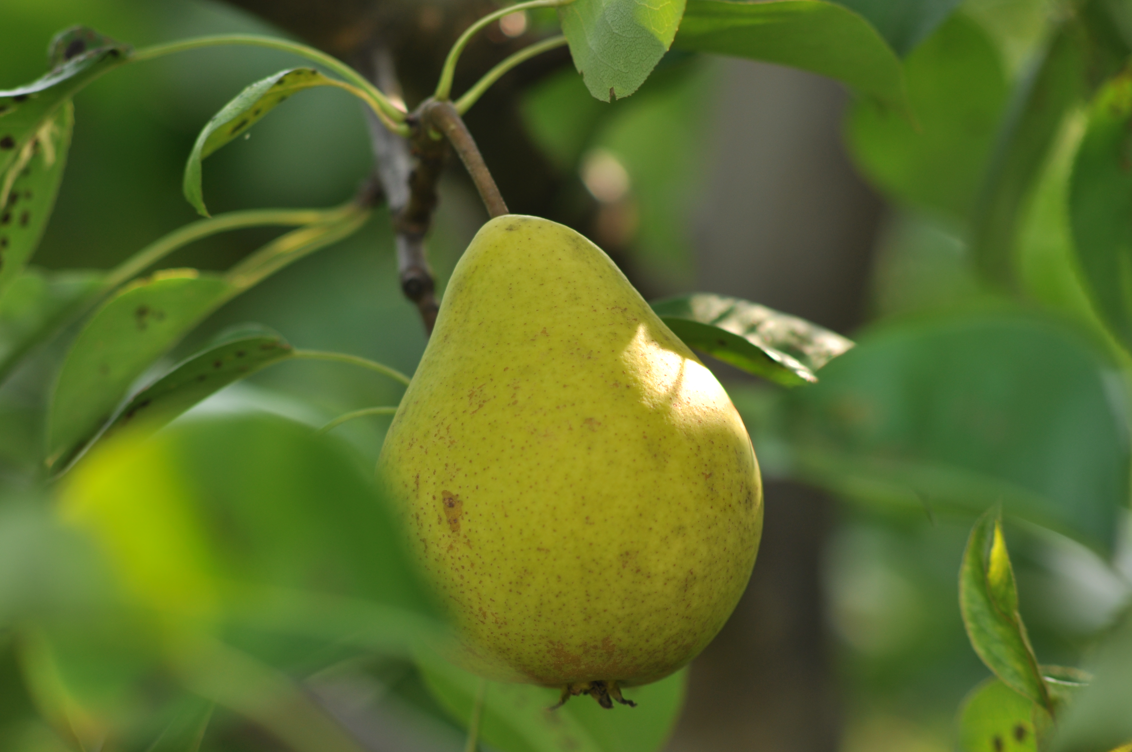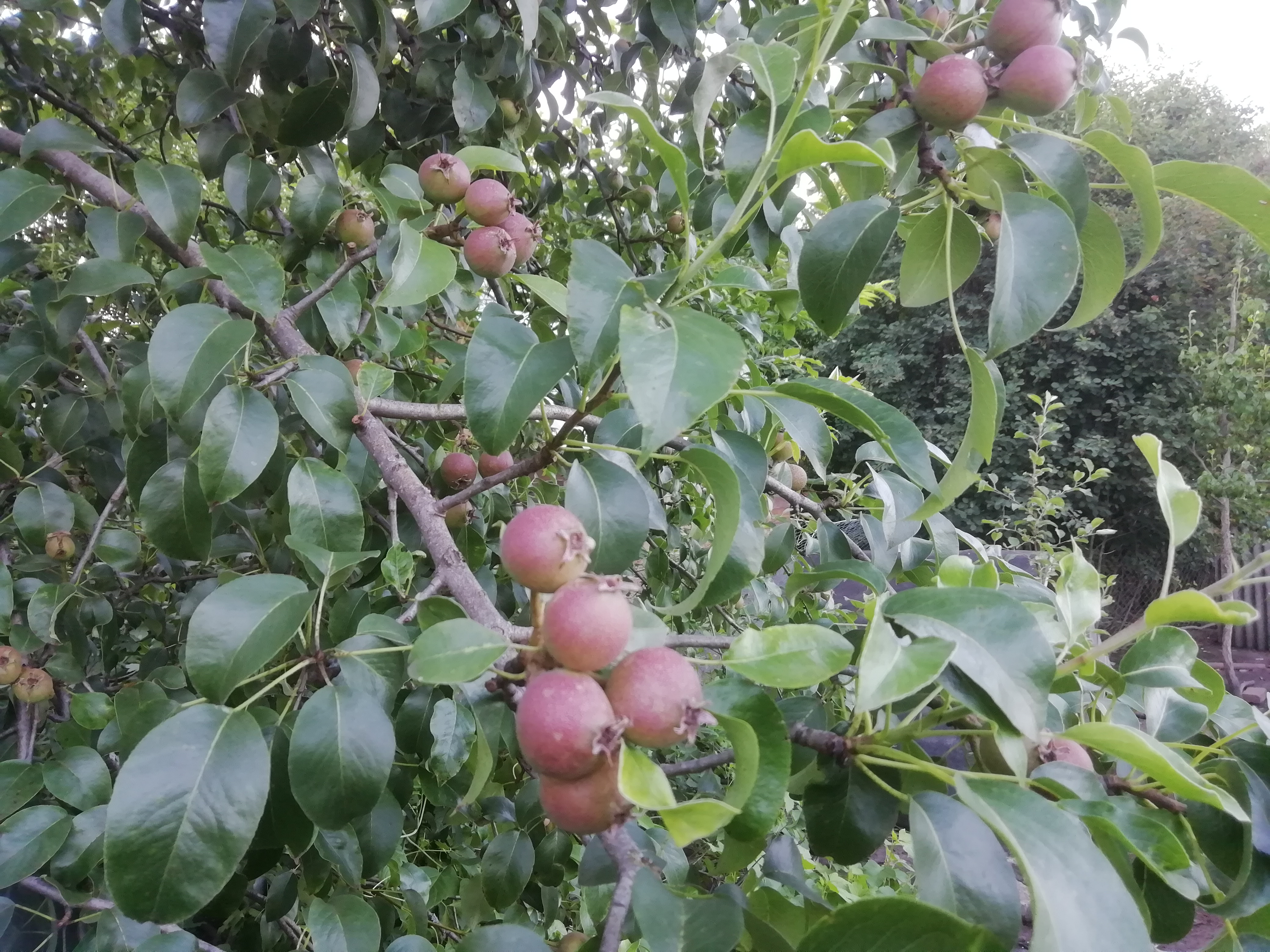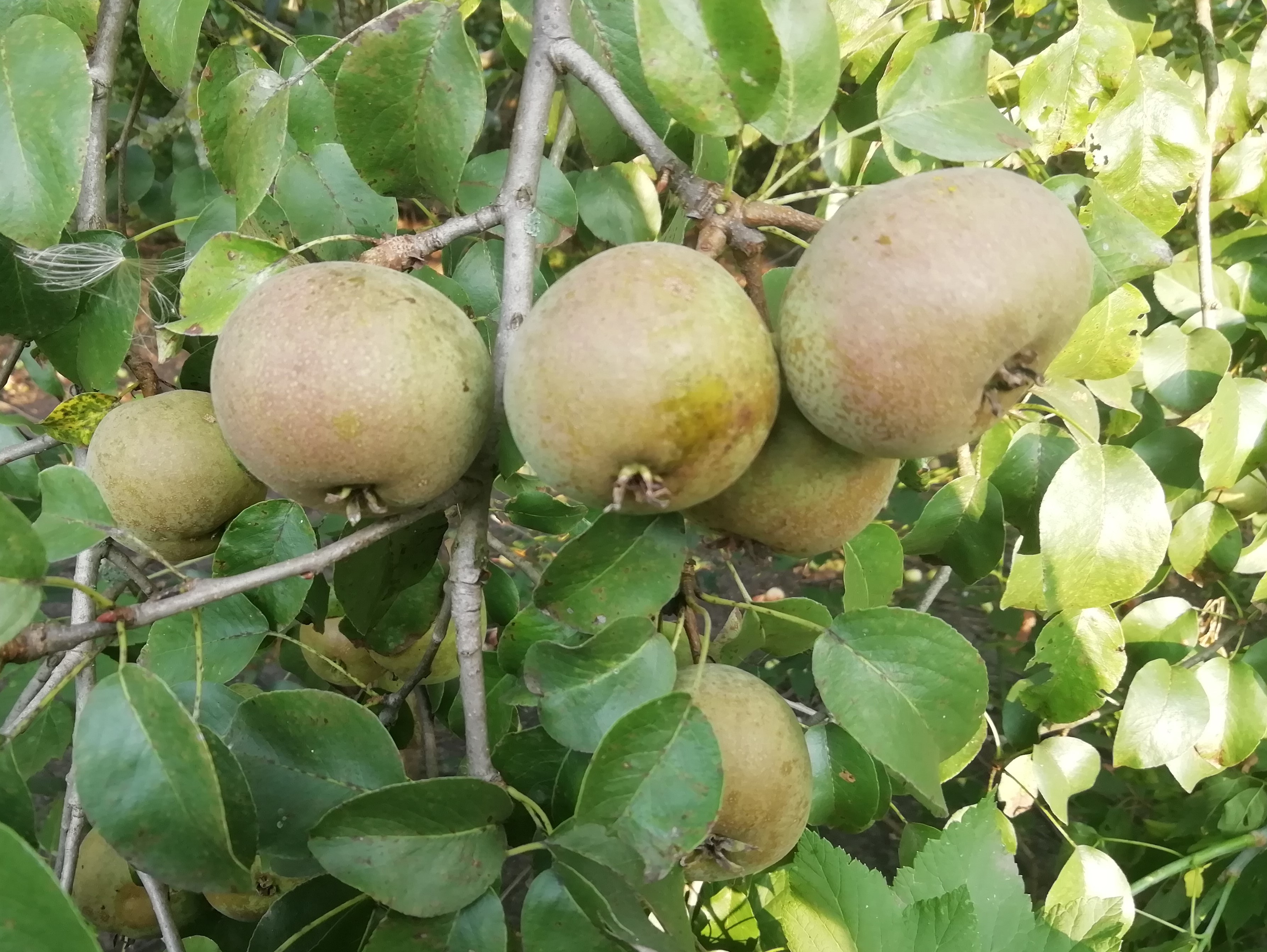 Первое фото сделанное ранее. Плоды созревают очень поздно, в холодное лето большая часть не дозревает, а может я зрелыми их и не кушал, поскольку на хранение не ложил, твердые, вкусные, кислосладкие. Когда держишь грушу в руке, то ощущение что не по размеру тяжелая, внешне многие больше 200гр, не взвешивал, при созревание начинают желтеть, на солнце на некоторых появляется румянец. Чем то болеют, на грушах по осени как бы грязь появляется, но не смывается, другие сорта этим не страдают. Фото зрелых пока нет.