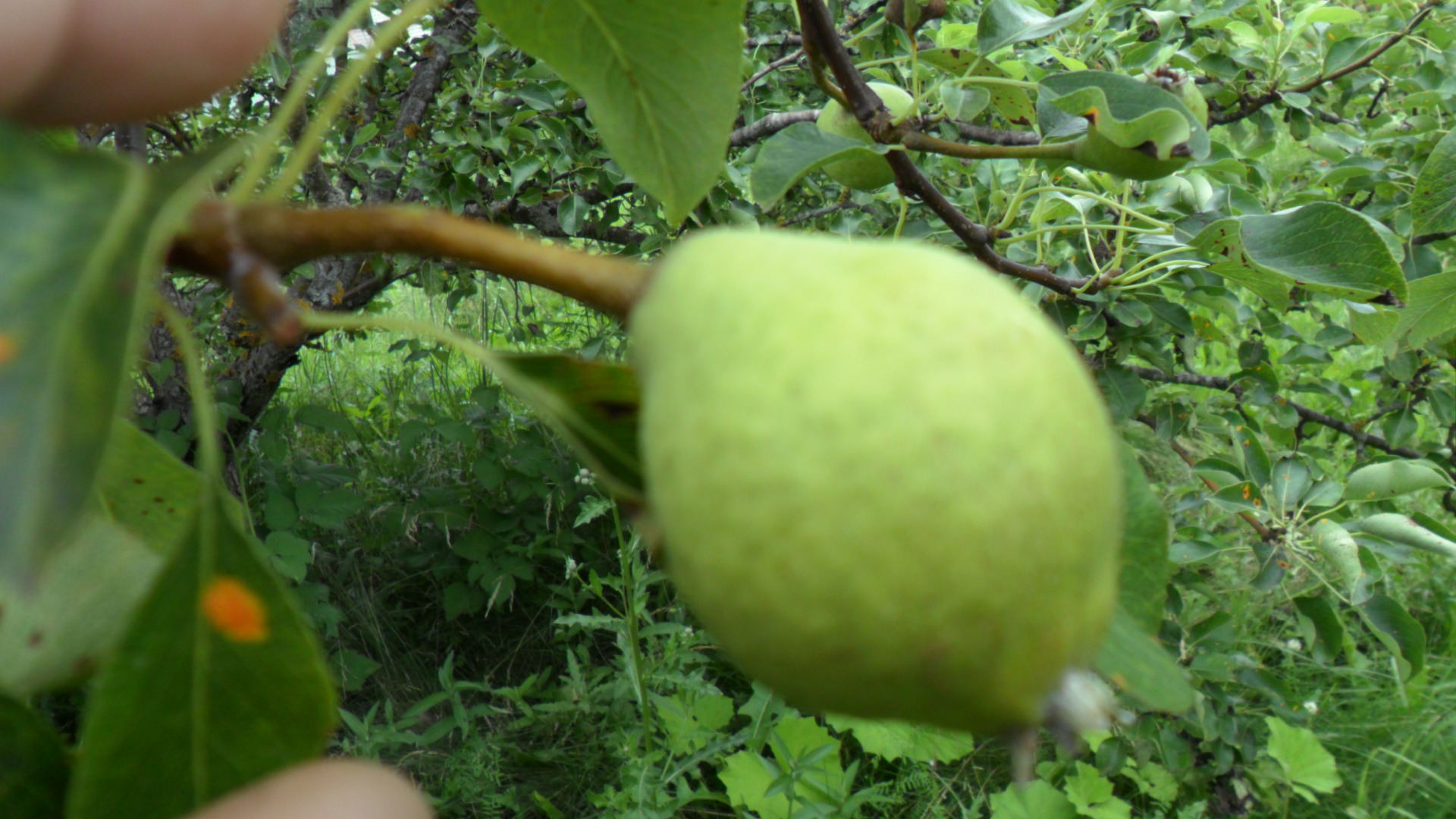 По внешнему виду копия Скороспелки свердловской(Таллицы). Плоды осыпались. Жара до 35 цельсия. Родня ест дыни, а я в накозание- груши.