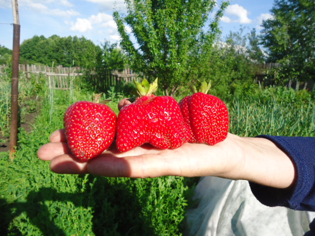 Да, размер потрясает, а вкус простоват(хотя такое количество осадков у нас было, в ягодах воды через край и вкус размытым получался) .
