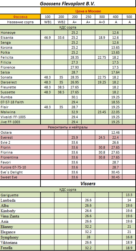 В сезоне СП 2016 мы работаем с новым поставщиком - ЕвроСад, официальным дилером голландкой компании Goossens Flevoplant B.V.