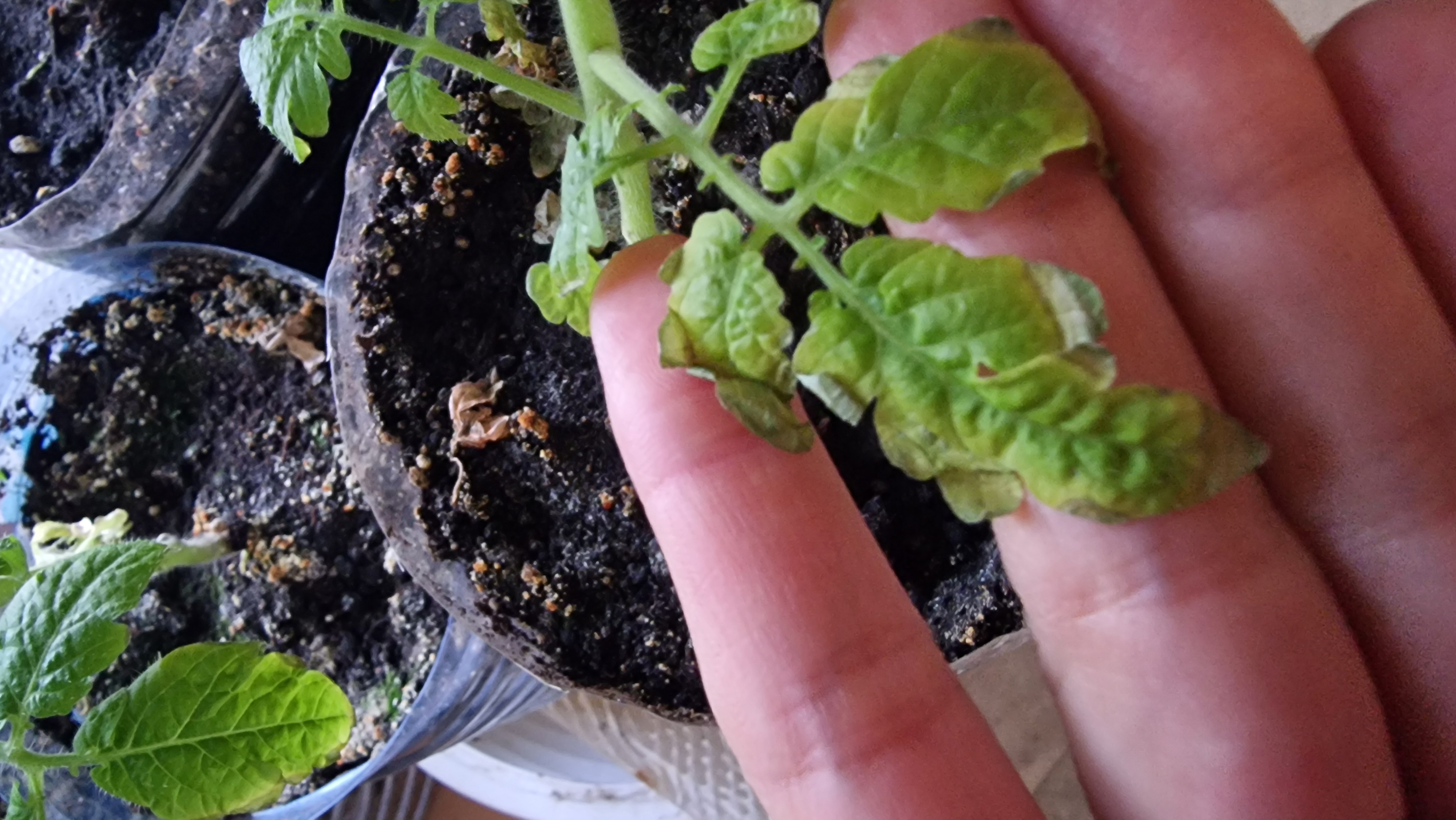С томатами, тоже самое. Начинать с 200г стаканчика, а не сразу в 5л баклажку. С томатами проще, они хорошо наращивают корневую. Они какой высоты? Если что, их можно срезать у земли и укоренить в воде, можно добавить какой-нибудь корне-стимулятор. Земля у томатов вся в высолах или заменить, или просушить. Земля должна быть воздушная, влажная, но не сырая. Сожмите её руками в комок и чуть надовите пальцем. Комок должен развалиться. Взвесите на руке стаканчик с готовой землёй и запомните вес. При проливе не должен быть тяжелее, чем сейчас. И не забывать рыхлить землю на след. день после полива, что бы не было корки. Поливать понемногу, буквально 30г. Подкормка, тоже при пересадке в большую тару.