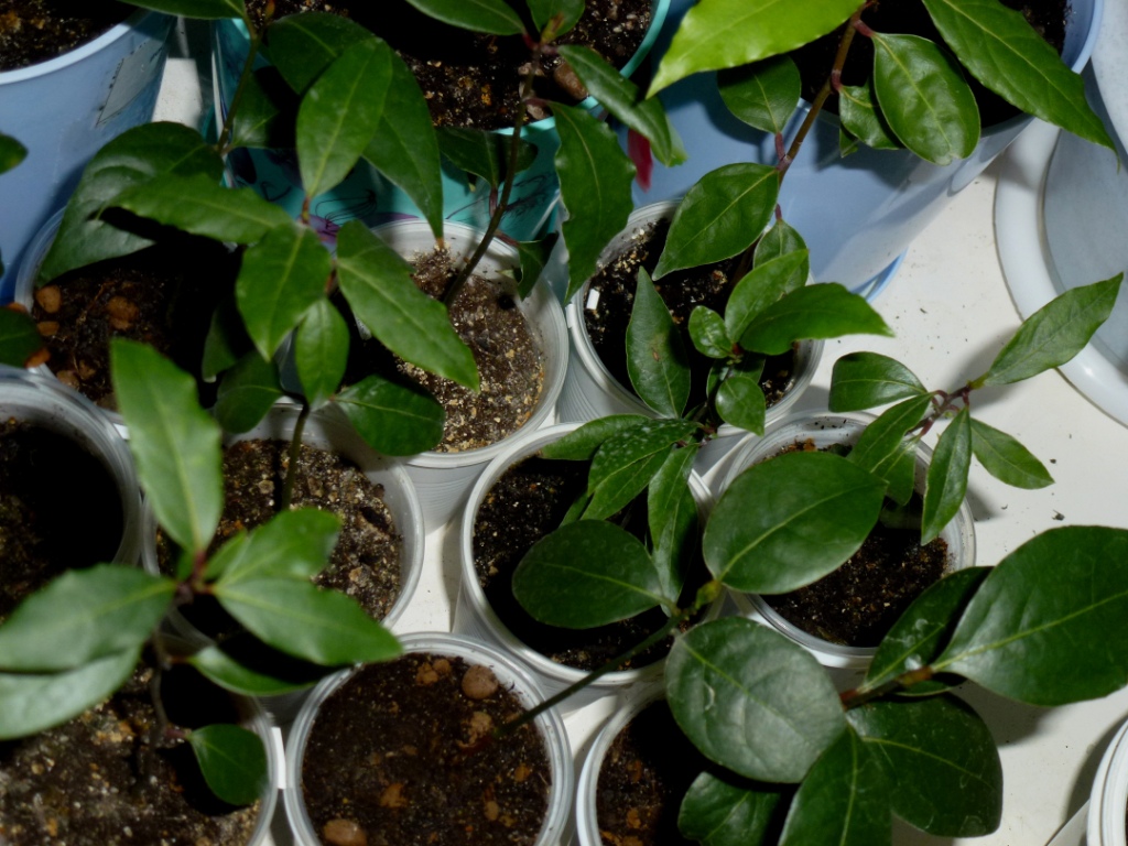 Кучка сеянцев из семян веника лавра из Абхазии подрастают.