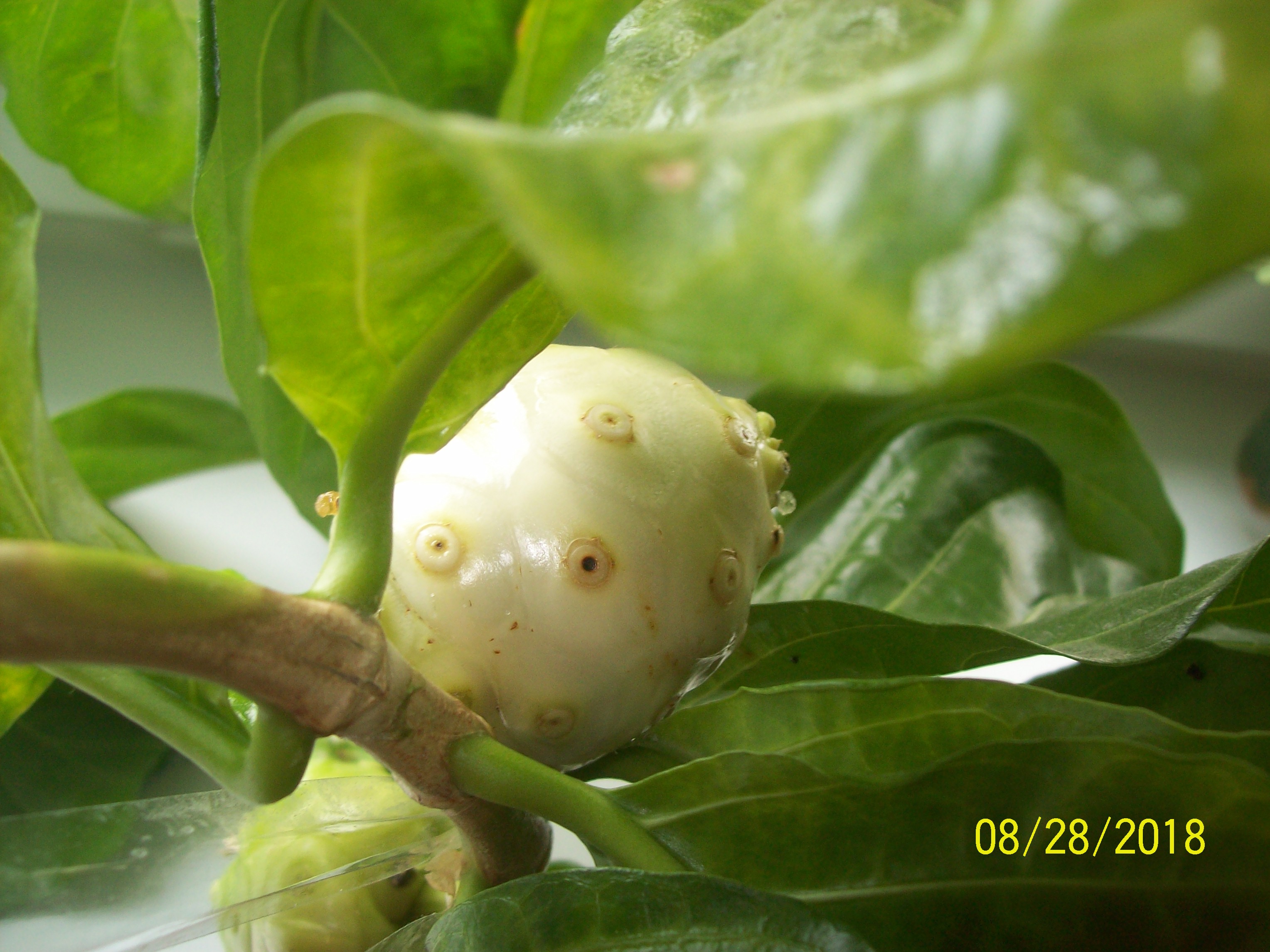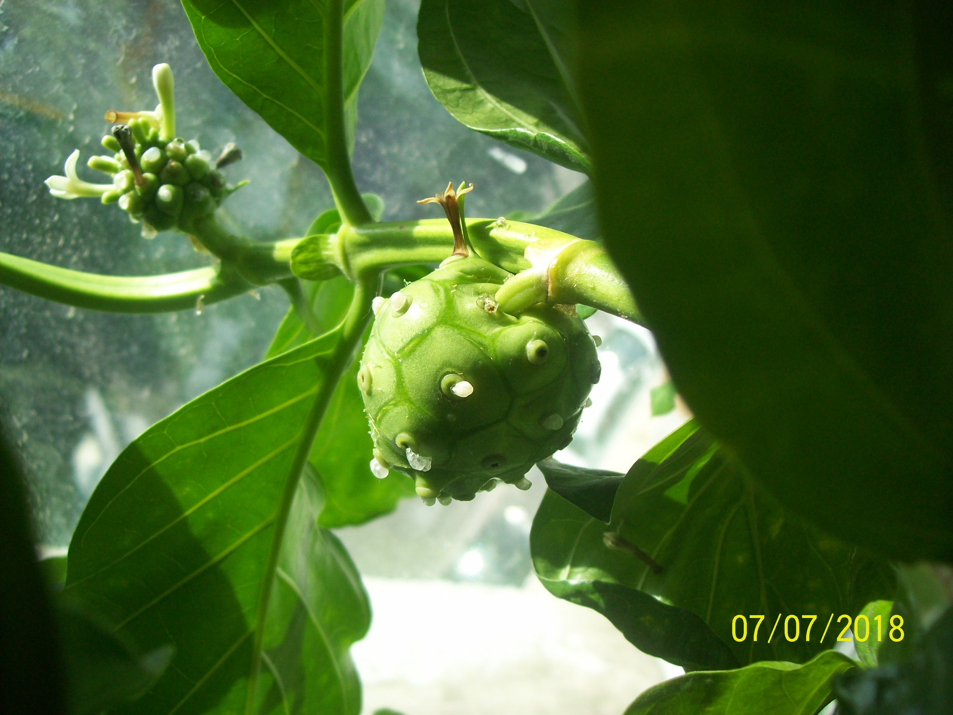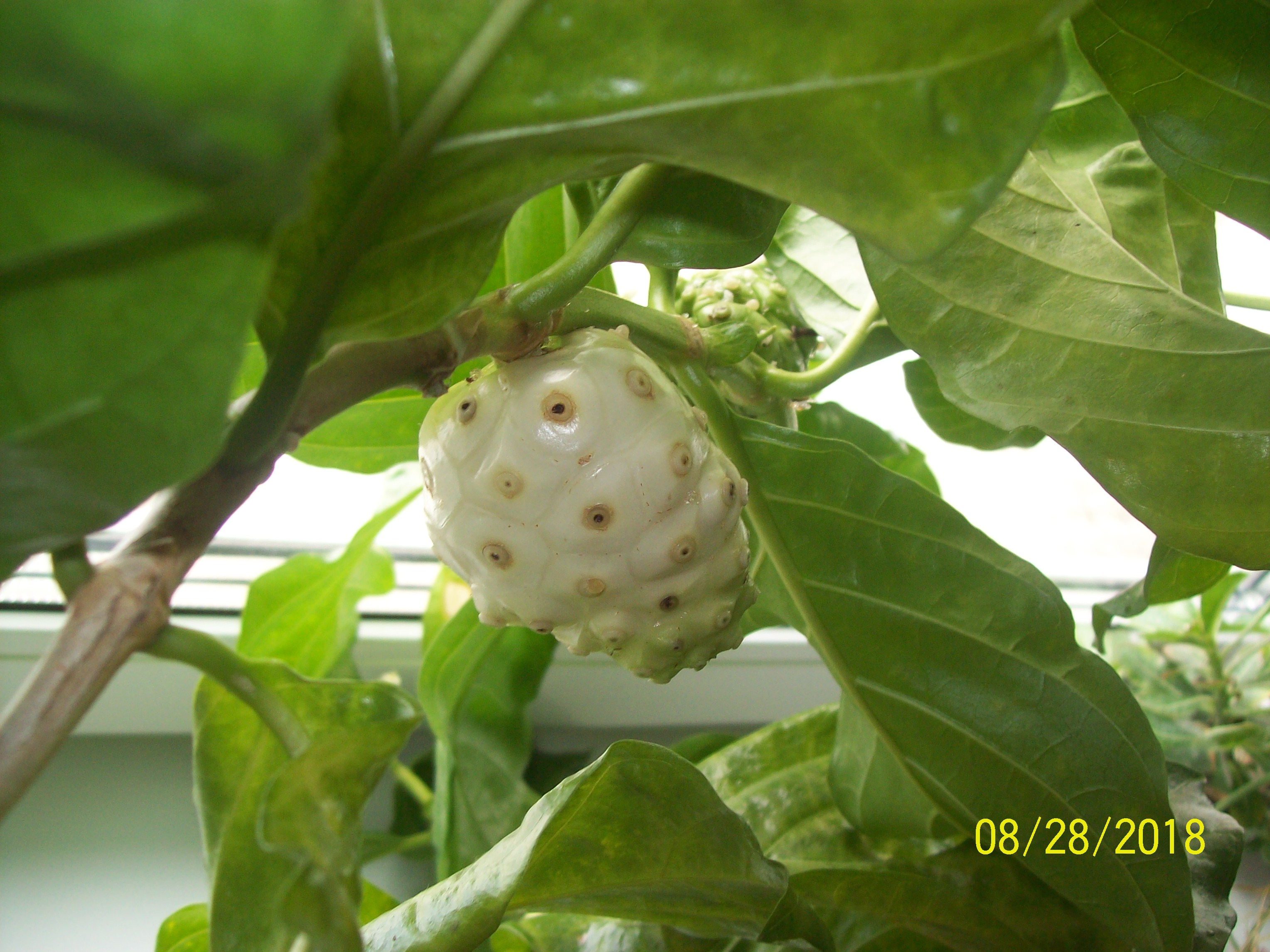 Про нони наверно многие слышали и читали в нете. Сажала семенами, из 50 штук взошло только одно, выросло до деревца и заплодоносило. Зацвела в 3 года, но горшочек был маловат и ягодки поскидывала. Пересадила и вот, наливаются уже не ягодки, а яблочки.