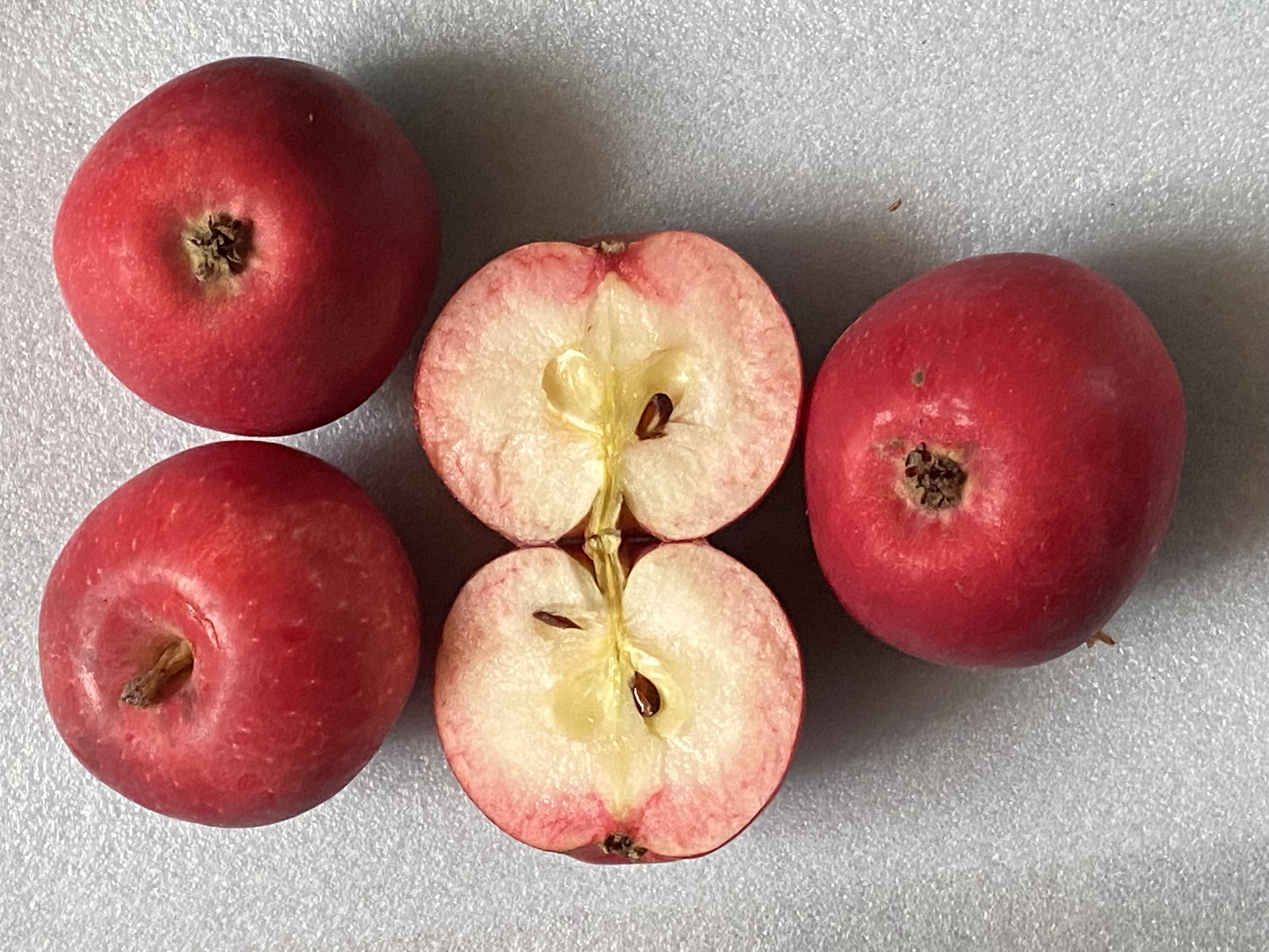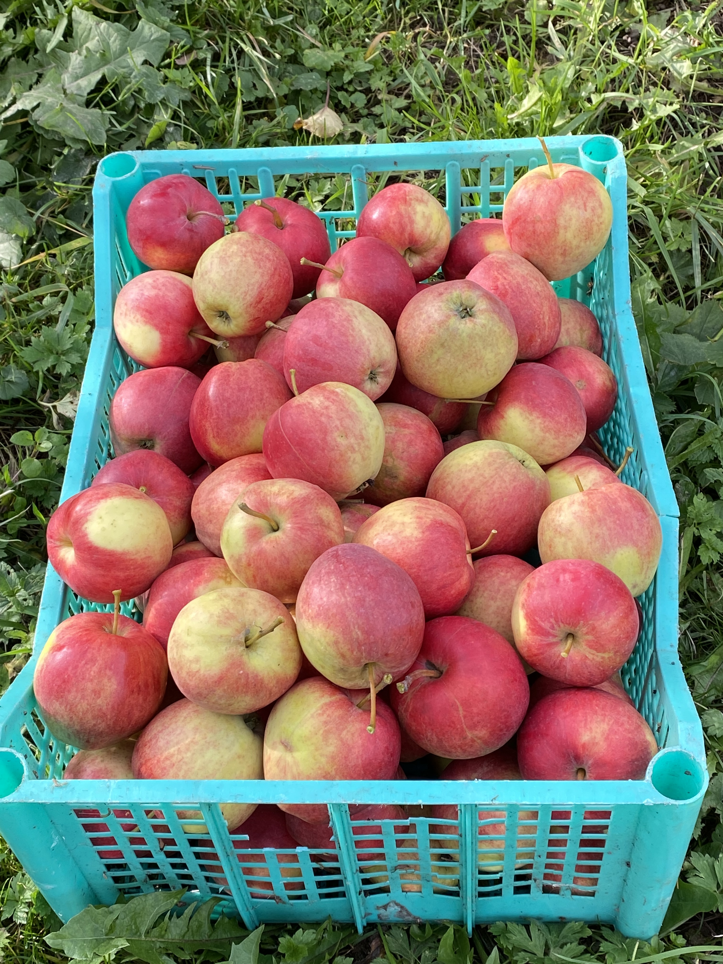 Плоды небольшие- 90-120 грамм, но их очень много. Цветоед, почему-то, обошёл этот сорт. Первое плодоношение-на 4-й год. Урожай 62 яблока. Мелкоплодность не считаю недостатком. Продавать яблоки мне не нужно.