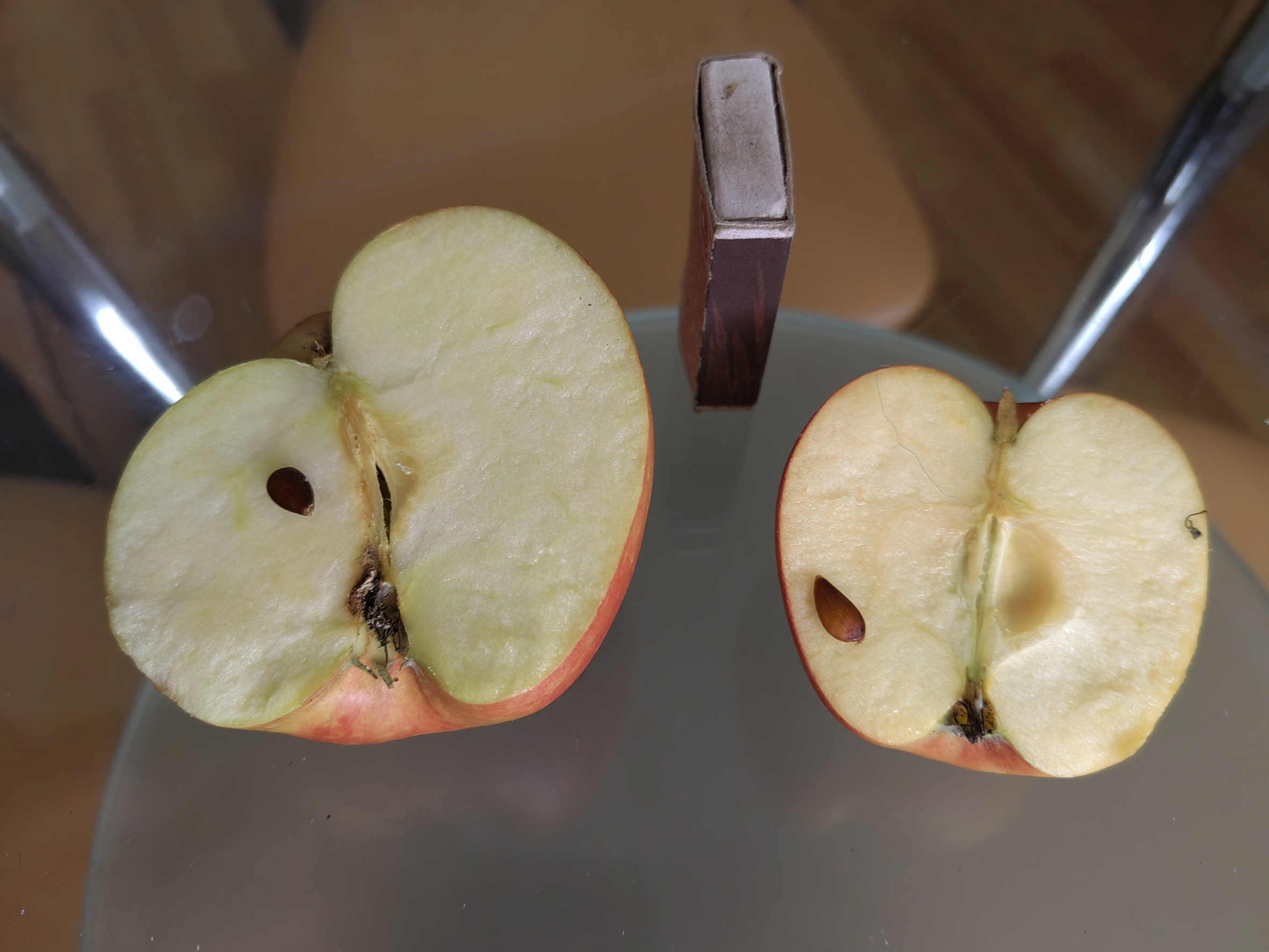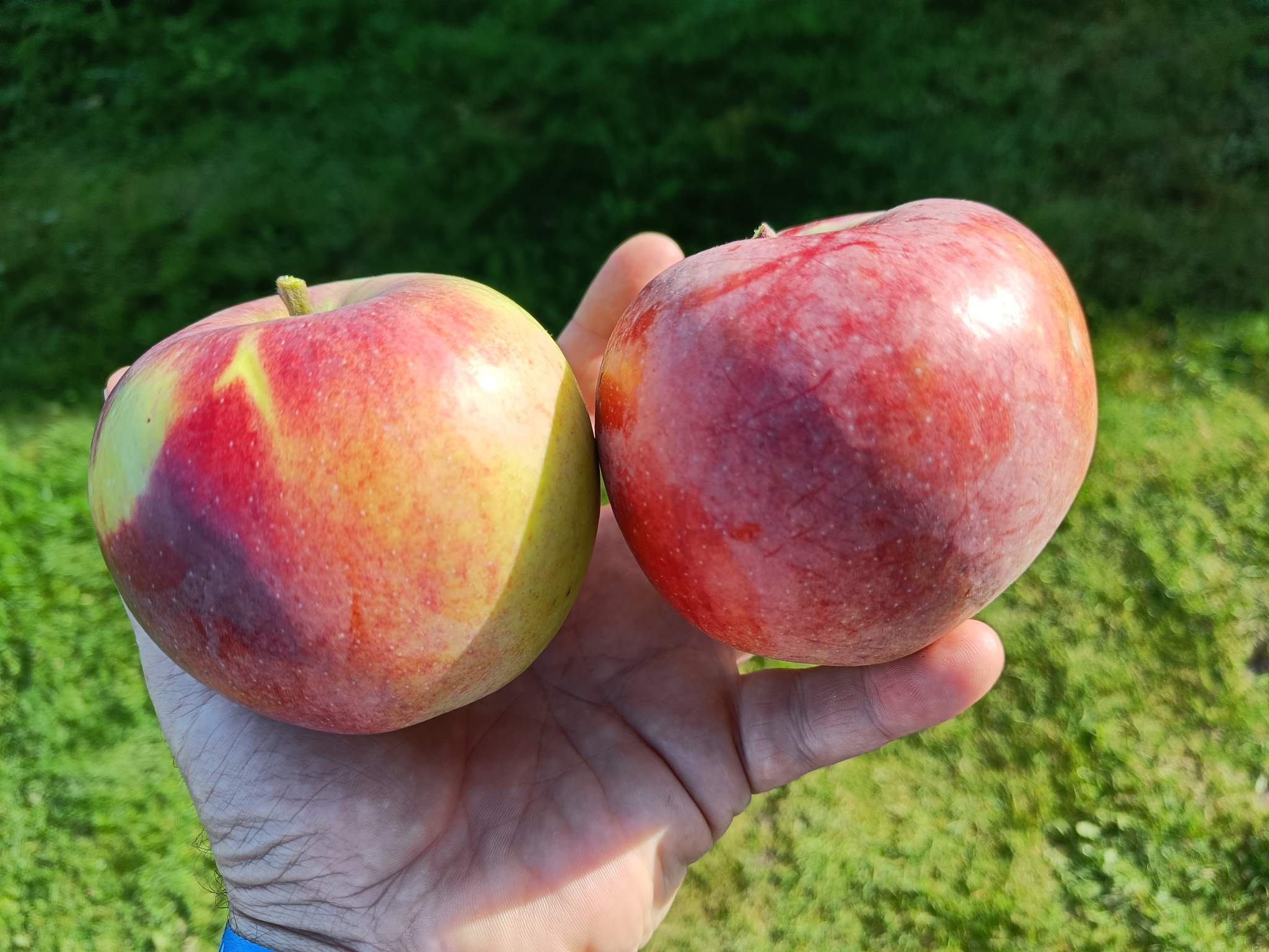 Хранение в погребе более месяца Граф Эззо слева ,Пинова справа. У обоих сортов твердая сочная мякоть, кисло-сладкие,вкус у каждого индивидуальный, очень хороший-4.6.Весной приобрел однолетку Память Сикоры, были сигналки, одну оставил.Сегодня попробовал после месяца хранения в холодильнике, твердая,сочная мякоть, кисло-сладкий очень хороший вкус -4.6.Решил за одно попробовать из погреба Богатырь и Мартовское, совершенно разные уровни, если в прошлом году с удовольствием употреблял Богатырь,в этом при наличии в хранении сигналок различных новых для меня сортов, к Богатырю рука не тянется.