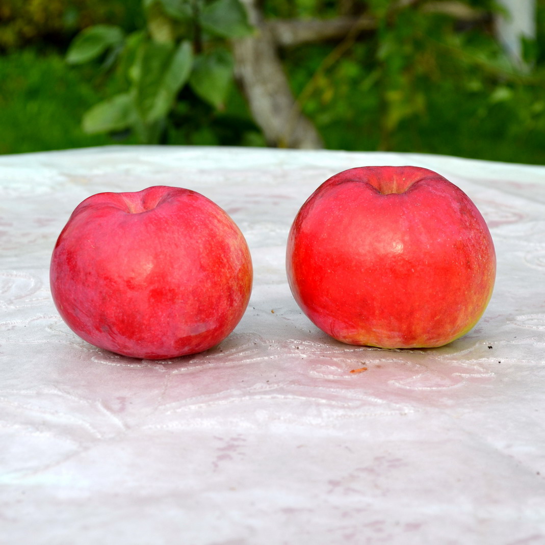 Однако есть в нем одна загадка, которую так и не могу понять. Где-то в 2007 году я получил черенки этого сорта из трех разных источников. В результате получилось пять деревьев. 2+2+1. Три из них вступили в плодоношение раньше, они имеют отличный вкус плодов и высокую урожайность, да такую что в результате сильного ветра одно из деревьев просто сломало.