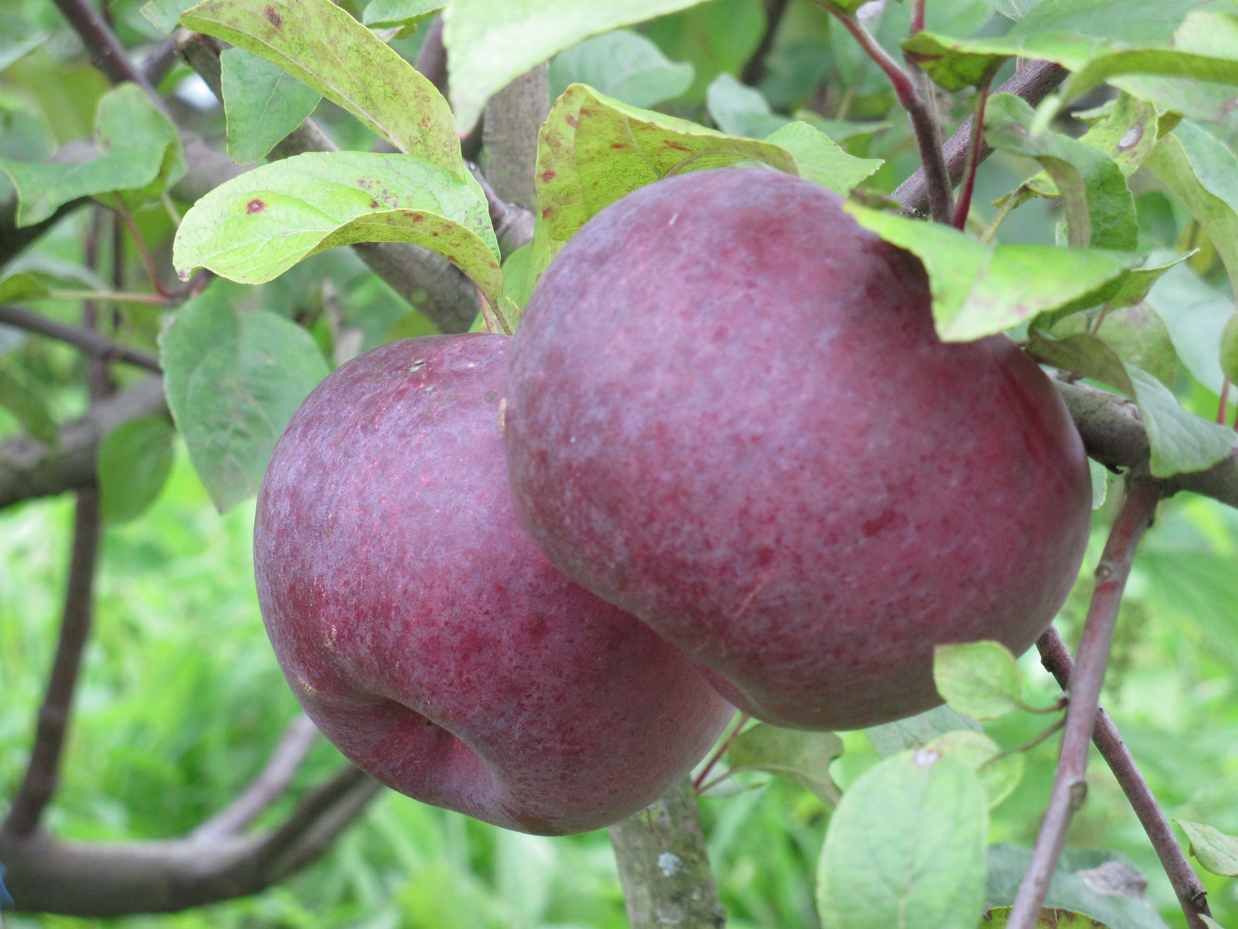 Есть еще вкусная раннезимняя форма из семьи Грушовка верненская х Старкримсон. Мякоть белая с розовыми прожилками, нежная. Но без обработки сильно поражается паршой. Кажется здесь на форуме кто-то писал о том, что китайцы вывели черные яблоки.