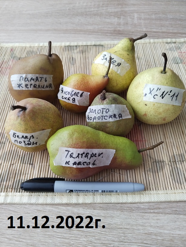 Из шести груш на фото, самый лучший вкус у Золотоворотской, прививал 5 лет назад, было несколько сигналок, но состояние на пределе. Остальные из шести далеко отстали, ближе всех по вкусу Память Жегалина, но были употреблены до Нового года. Завея обычно лежит до середины января, не теряя своего сладковато-кислого вкуса, в этом тоже только до НГ и вкус посредственный. Про остальные, мало чего хорошего можно сказать, кроме Белорусской поздней. Она вкус тоже не добрала, но он хотя бы приблизился к своему стандартному.